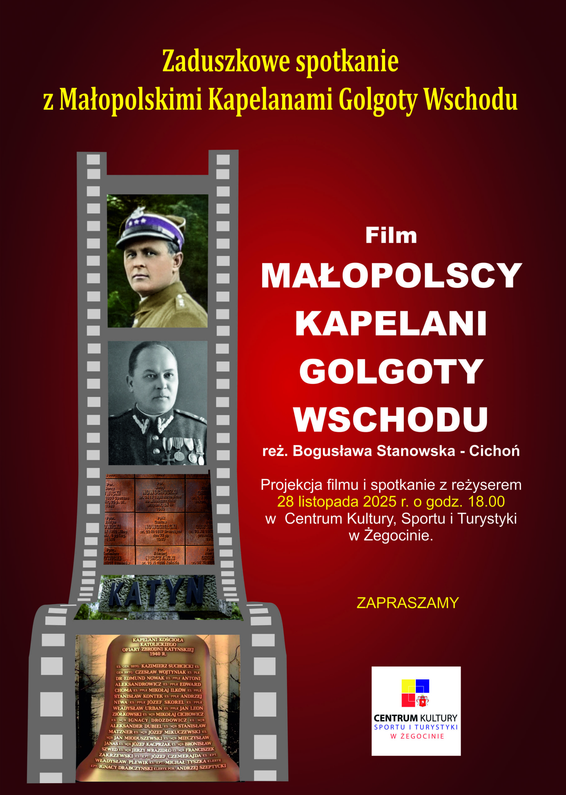 Serdecznie zapraszamy na wyjątkową projekcję filmu „Małopolscy Kapelani Golgoty Wschodu” w reż. Bogusławy Stanowskiej – Cichoń.