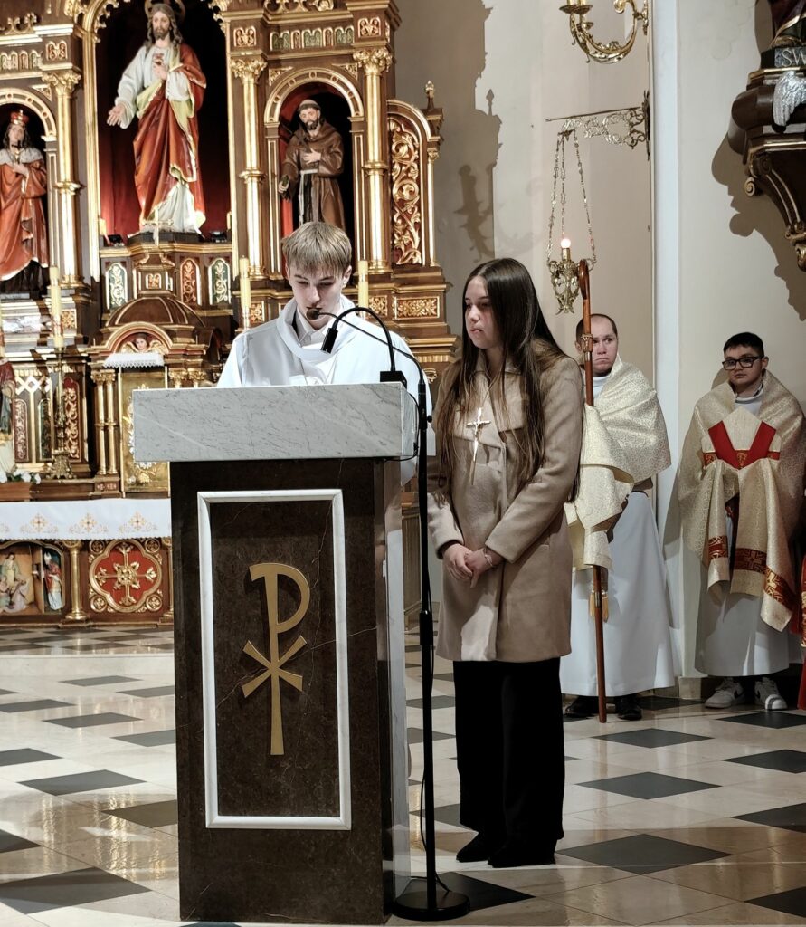 Msze święte o 9.45 i 11.00 celebrowane przez Ks. Proboszcza Bogusława Pasierba, ks. Jana Wąchałę, ks. Zbigniewa Kępę oraz ks. Mariusz Berko, który głosił homilię i dzisiaj – 18 stycznia obchodzi swoje imieniny, uświetnił swoim śpiewem kolęd i pastorałek Chór szkolny Szkoły Podstawowej im. Świętej Kingi w Żegocinie pod kierunkiem Pani Anny Maurer – Pasionek. Chór liczy 40 uczniów, jest laureatem II miejsca XVI Małopolskich Spotkaniach Kolędowych w Krakowie w 2025r. oraz laureatem II miejsca XXIII edycji Festiwalu „Z pieśnią patriotyczną i żołnierską przez wieki” w Nowym Wiśniczu w 2025r. Życzenia imieninowe ks. Mariuszowi złożyli przedstawiciel Rady Parafialnej i przedstawiciele młodzieży. Dziękujemy chórzystom i ich rodzicom. Dziękujemy Pani Annie Maurer – Pasionek za opiekę nad chórem i poświęcony czas.