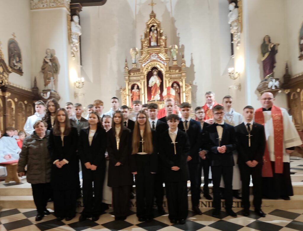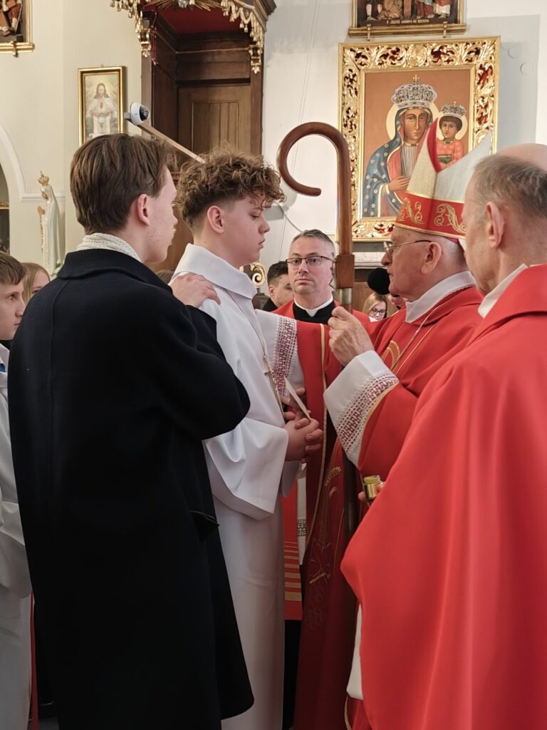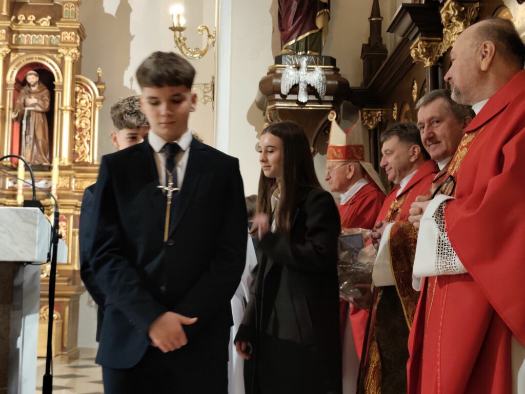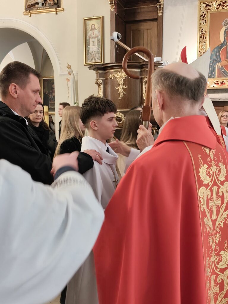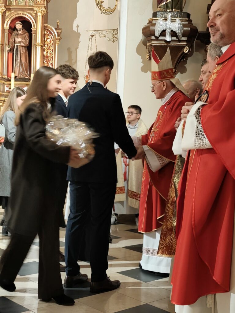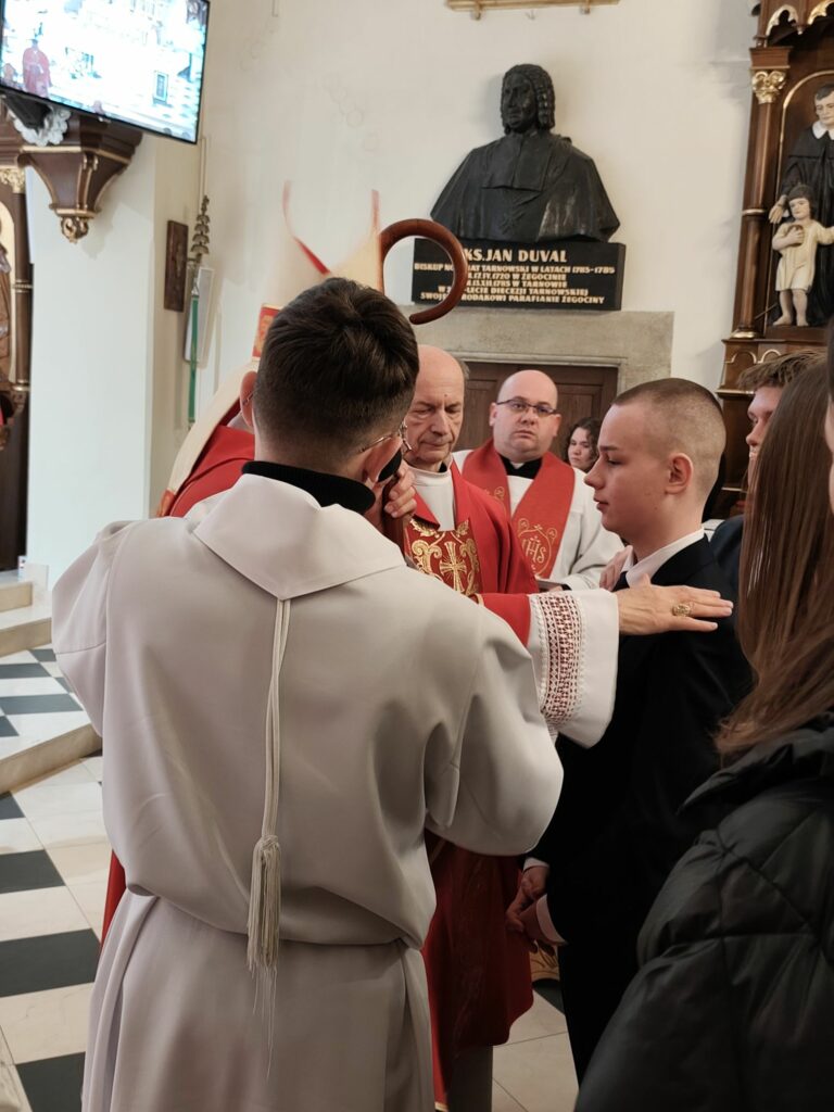 Ósmoklasiści z Bytomska (10), Rozdziela ( 6), Żegociny ( 23) i Kamionnej( 16) otrzymali 17 lutego sakrament bierzmowania, którego udzielił im abp Henryk Józef Nowacki. Sakrament dojrzałości przyjęło 55 młodych ludzi. Do tego sakramentu dojrzałości przygotowywali młodzież naszej parafii w SP Rozdziele – ks. Piotr Klóska, a w SP Żegocina i w SP Bytomsko – Ks. Robert Osak. On też przygotował młodzież parafii do uroczystości bierzmowania przez kilkudniowe spotkania w kościele, Słowo Boże i próby. O udzielenie sakramentu dojrzałości kandydatom poprosiła najpierw delegacja rodziców Państwo Anna i Wojciech Wrona – a w imieniu Parafii Żegocina i Kamionna ks. proboszcz Bogusław Pasierb, który złożył oświadczenie, że kandydaci dobrze przygotowali się do tego sakramentu, będącego uzupełnieniem chrztu świętego. Mszę świętą razem z ks. Biskupem celebrowali księża proboszczowie parafii Kamionna i Żegocina, ks. dziekan dekanatu lipnickiego Ryszard Kołodziej, ks. Jan Wąchała, ks. Mariusz Berko oraz ks. Zbigniew Kępa – nasz rodak pochodzący z Żegociny. Na zakończenie nabożeństwa ks. biskup udzielił pasterskiego błogosławieństwa, a młodzież podziękowała mu i wszystkim, którzy pomogli jej w drodze do sakramentu. Na pamiątkę tego ważnego wydarzenia bierzmowani otrzymali książki, z podpisem ks. Biskupa, które będą im przypominały ten dzień. Na zakończenie wykonano pamiątkowe zdjęcia.
