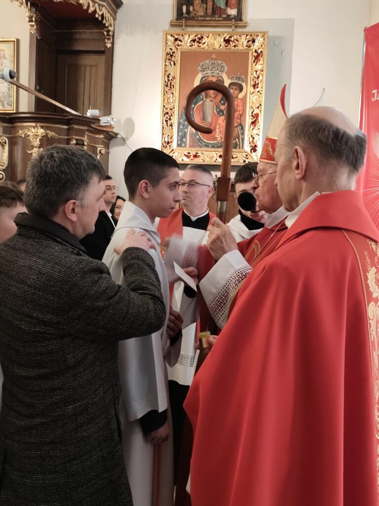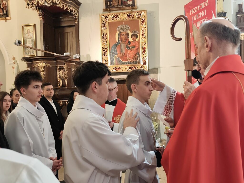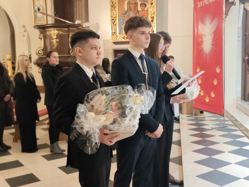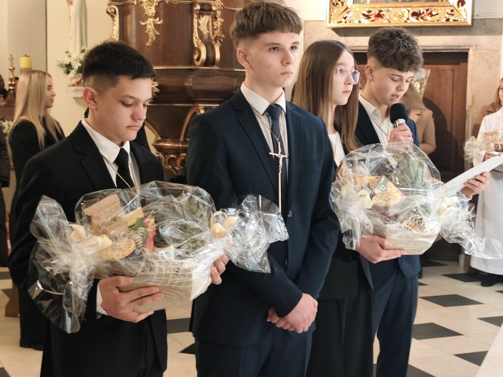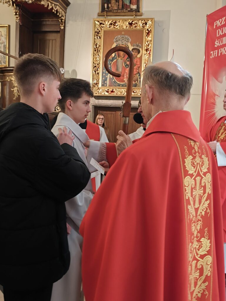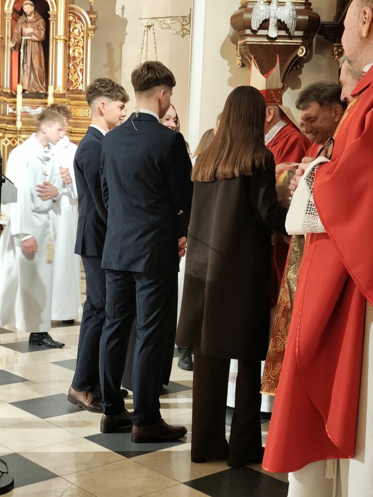 Ósmoklasiści z Bytomska (10), Rozdziela ( 6), Żegociny ( 23) i Kamionnej( 16) otrzymali 17 lutego sakrament bierzmowania, którego udzielił im abp Henryk Józef Nowacki. Sakrament dojrzałości przyjęło 55 młodych ludzi. Do tego sakramentu dojrzałości przygotowywali młodzież naszej parafii w SP Rozdziele – ks. Piotr Klóska, a w SP Żegocina i w SP Bytomsko – Ks. Robert Osak. On też przygotował młodzież parafii do uroczystości bierzmowania przez kilkudniowe spotkania w kościele, Słowo Boże i próby. O udzielenie sakramentu dojrzałości kandydatom poprosiła najpierw delegacja rodziców Państwo Anna i Wojciech Wrona – a w imieniu Parafii Żegocina i Kamionna ks. proboszcz Bogusław Pasierb, który złożył oświadczenie, że kandydaci dobrze przygotowali się do tego sakramentu, będącego uzupełnieniem chrztu świętego. Mszę świętą razem z ks. Biskupem celebrowali księża proboszczowie parafii Kamionna i Żegocina, ks. dziekan dekanatu lipnickiego Ryszard Kołodziej, ks. Jan Wąchała, ks. Mariusz Berko oraz ks. Zbigniew Kępa – nasz rodak pochodzący z Żegociny. Na zakończenie nabożeństwa ks. biskup udzielił pasterskiego błogosławieństwa, a młodzież podziękowała mu i wszystkim, którzy pomogli jej w drodze do sakramentu. Na pamiątkę tego ważnego wydarzenia bierzmowani otrzymali książki, z podpisem ks. Biskupa, które będą im przypominały ten dzień. Na zakończenie wykonano pamiątkowe zdjęcia.
