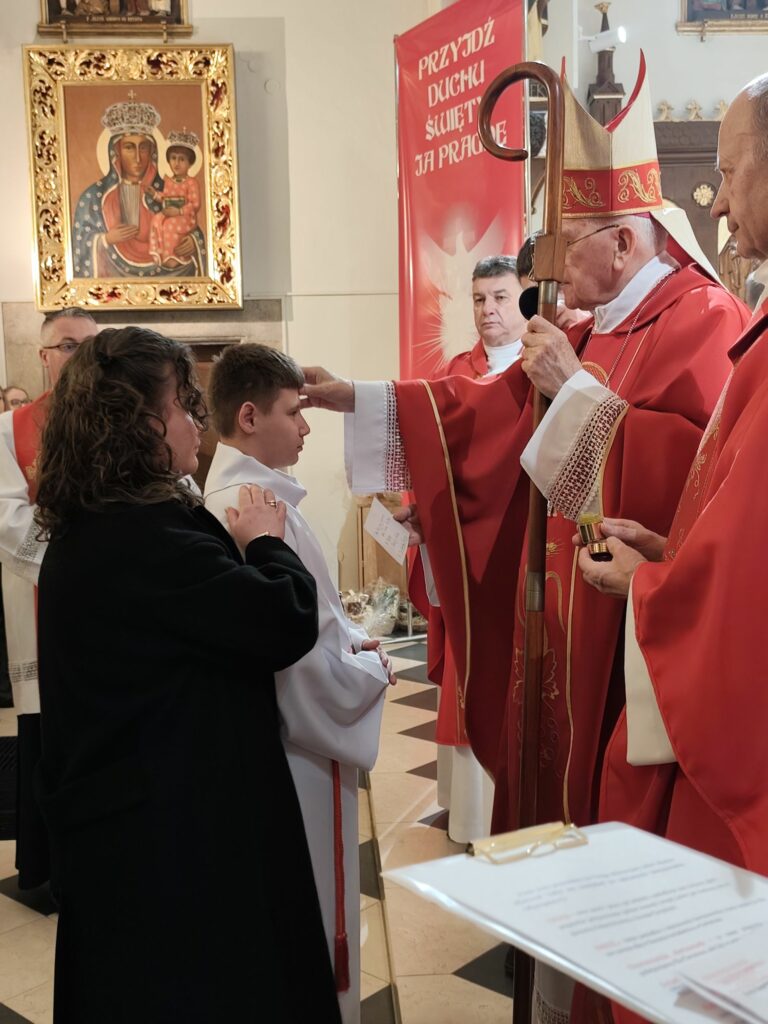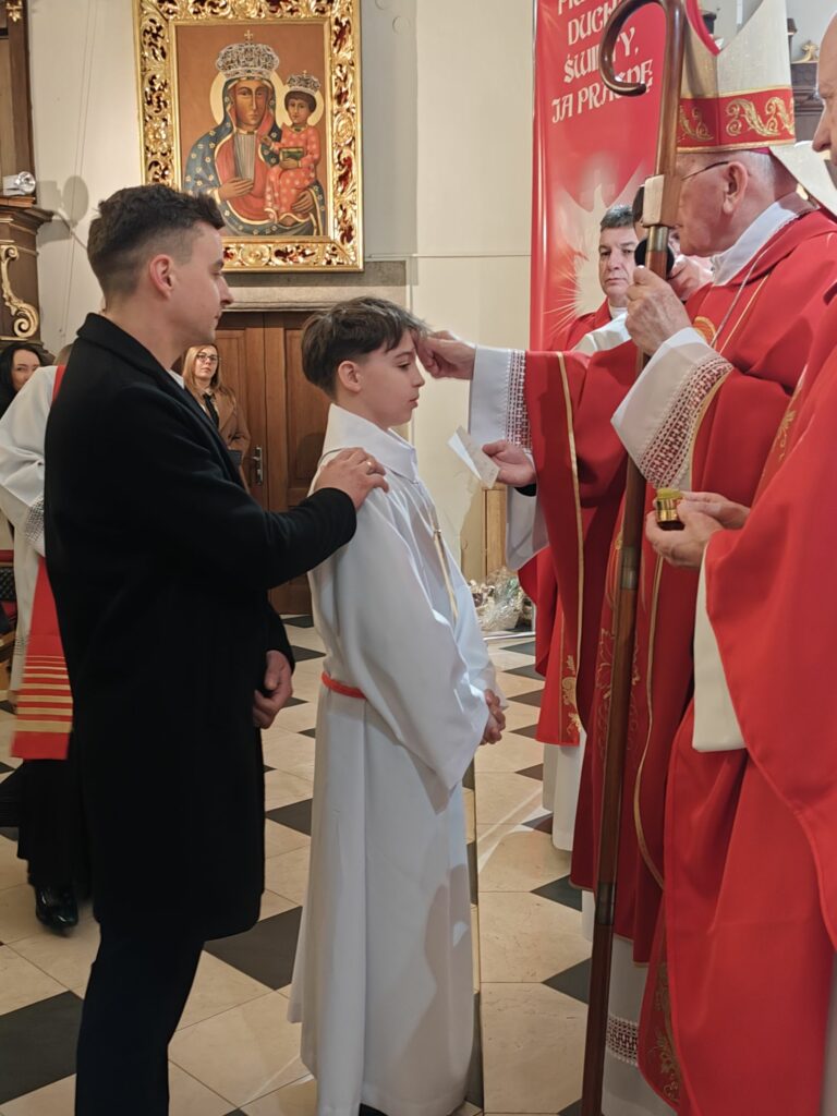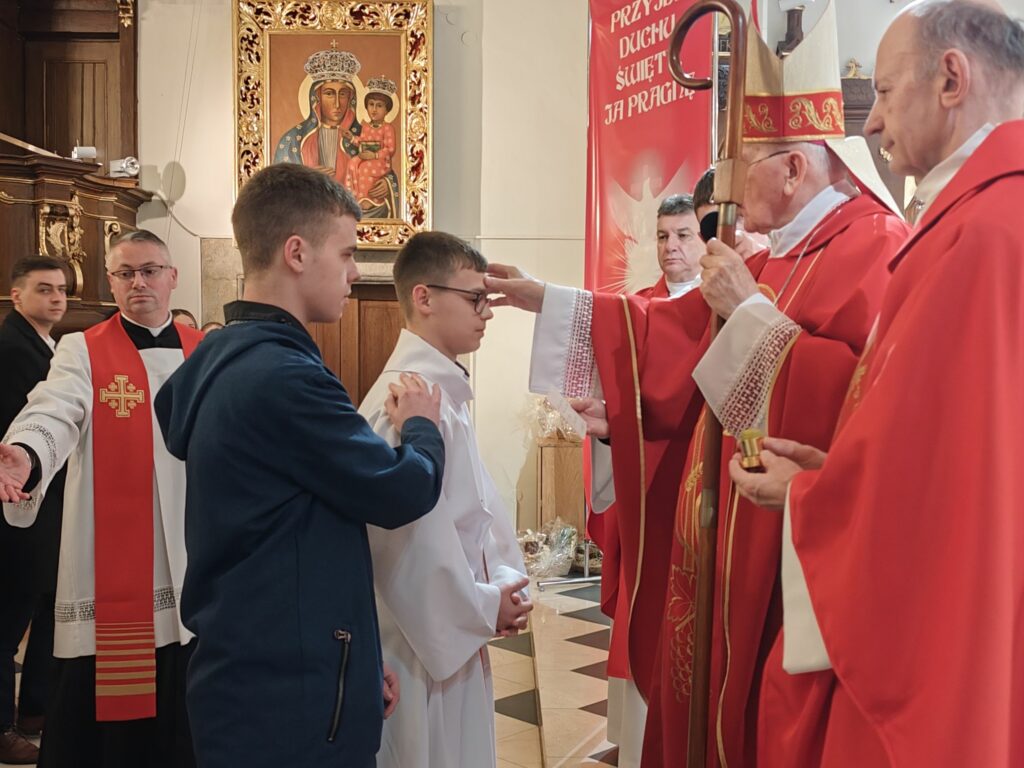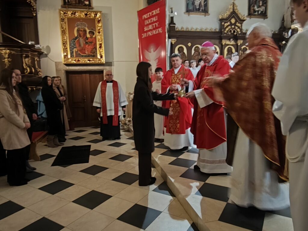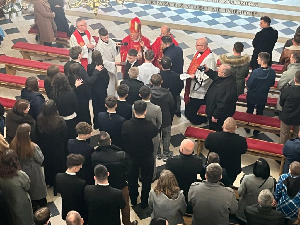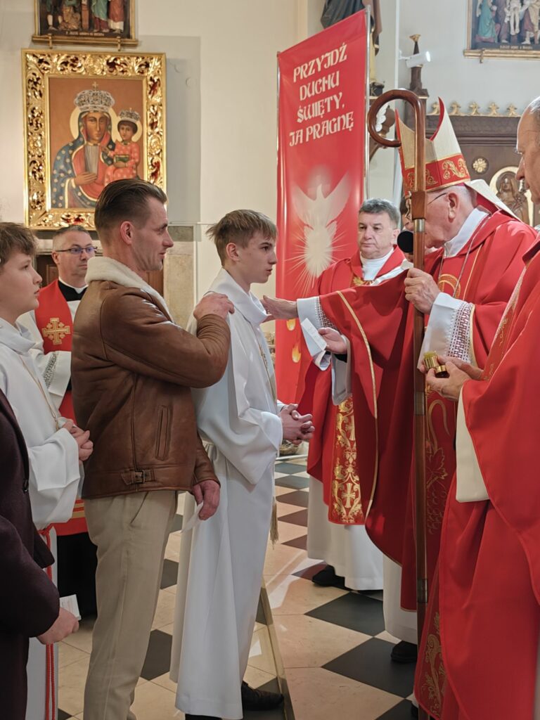 Ósmoklasiści z Bytomska (10), Rozdziela ( 6), Żegociny ( 23) i Kamionnej( 16) otrzymali 17 lutego sakrament bierzmowania, którego udzielił im abp Henryk Józef Nowacki. Sakrament dojrzałości przyjęło 55 młodych ludzi. Do tego sakramentu dojrzałości przygotowywali młodzież naszej parafii w SP Rozdziele – ks. Piotr Klóska, a w SP Żegocina i w SP Bytomsko – Ks. Robert Osak. On też przygotował młodzież parafii do uroczystości bierzmowania przez kilkudniowe spotkania w kościele, Słowo Boże i próby. O udzielenie sakramentu dojrzałości kandydatom poprosiła najpierw delegacja rodziców Państwo Anna i Wojciech Wrona – a w imieniu Parafii Żegocina i Kamionna ks. proboszcz Bogusław Pasierb, który złożył oświadczenie, że kandydaci dobrze przygotowali się do tego sakramentu, będącego uzupełnieniem chrztu świętego. Mszę świętą razem z ks. Biskupem celebrowali księża proboszczowie parafii Kamionna i Żegocina, ks. dziekan dekanatu lipnickiego Ryszard Kołodziej, ks. Jan Wąchała, ks. Mariusz Berko oraz ks. Zbigniew Kępa – nasz rodak pochodzący z Żegociny. Na zakończenie nabożeństwa ks. biskup udzielił pasterskiego błogosławieństwa, a młodzież podziękowała mu i wszystkim, którzy pomogli jej w drodze do sakramentu. Na pamiątkę tego ważnego wydarzenia bierzmowani otrzymali książki, z podpisem ks. Biskupa, które będą im przypominały ten dzień. Na zakończenie wykonano pamiątkowe zdjęcia.