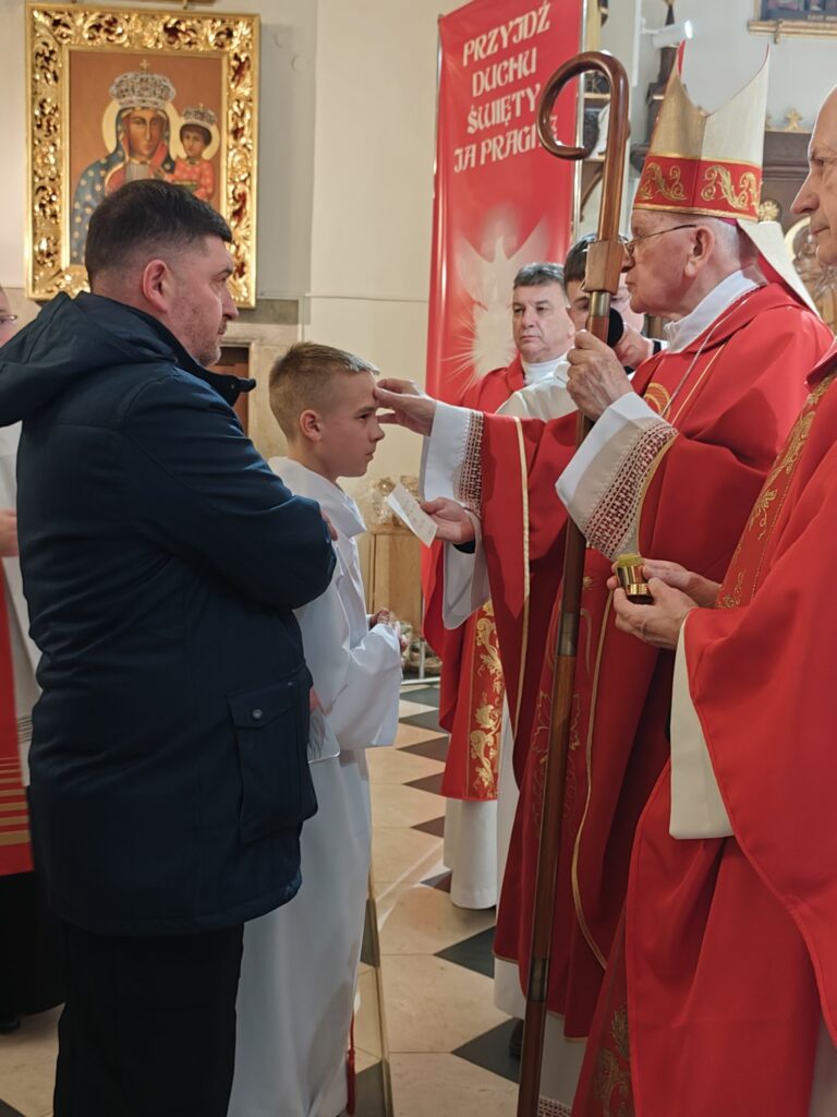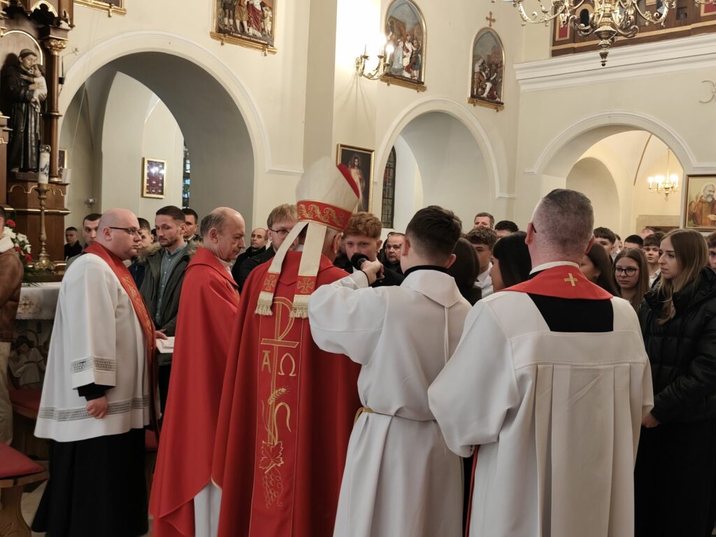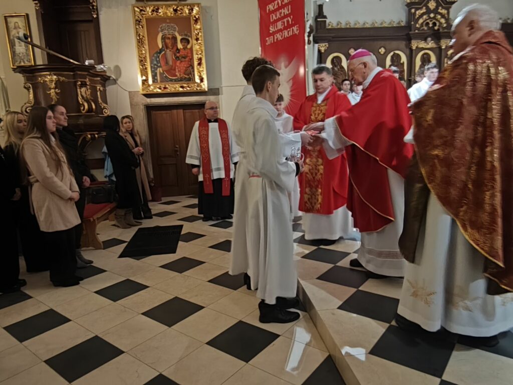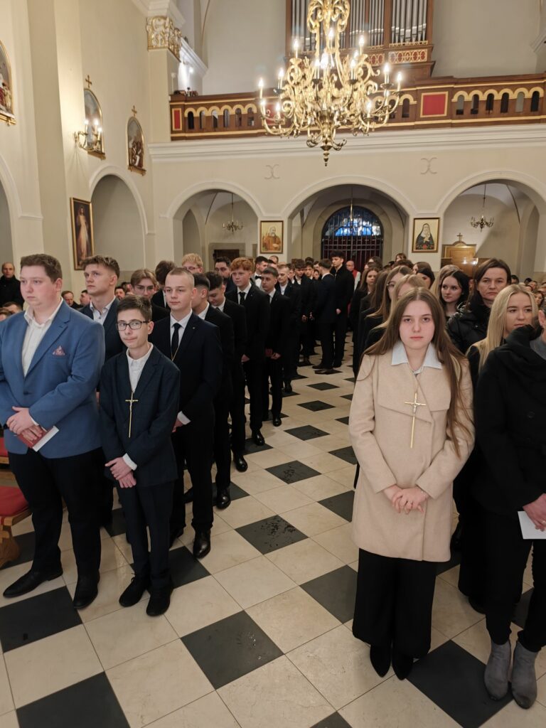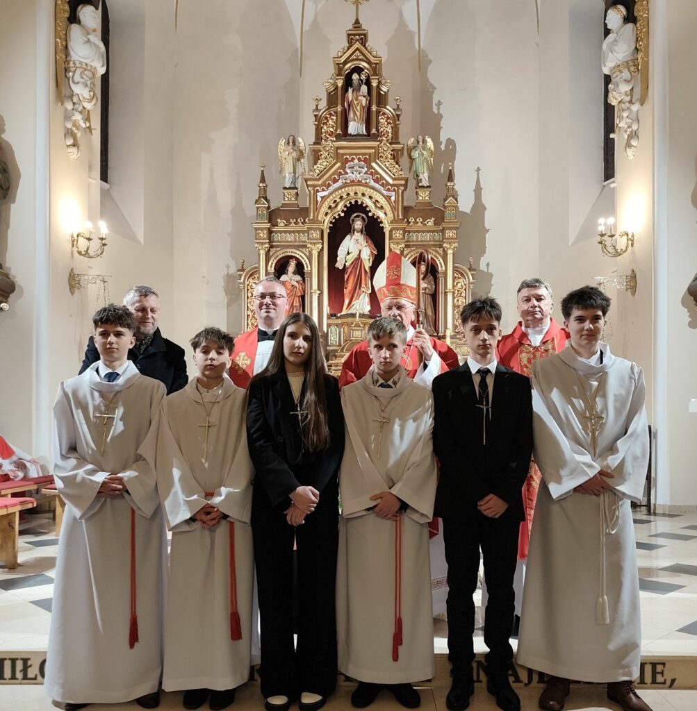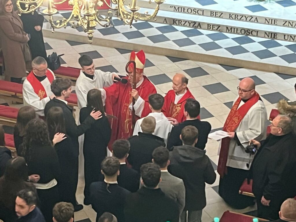 Ósmoklasiści z Bytomska (10), Rozdziela ( 6), Żegociny ( 23) i Kamionnej( 16) otrzymali 17 lutego sakrament bierzmowania, którego udzielił im abp Henryk Józef Nowacki. Sakrament dojrzałości przyjęło 55 młodych ludzi. Do tego sakramentu dojrzałości przygotowywali młodzież naszej parafii w SP Rozdziele – ks. Piotr Klóska, a w SP Żegocina i w SP Bytomsko – Ks. Robert Osak. On też przygotował młodzież parafii do uroczystości bierzmowania przez kilkudniowe spotkania w kościele, Słowo Boże i próby. O udzielenie sakramentu dojrzałości kandydatom poprosiła najpierw delegacja rodziców Państwo Anna i Wojciech Wrona – a w imieniu Parafii Żegocina i Kamionna ks. proboszcz Bogusław Pasierb, który złożył oświadczenie, że kandydaci dobrze przygotowali się do tego sakramentu, będącego uzupełnieniem chrztu świętego. Mszę świętą razem z ks. Biskupem celebrowali księża proboszczowie parafii Kamionna i Żegocina, ks. dziekan dekanatu lipnickiego Ryszard Kołodziej, ks. Jan Wąchała, ks. Mariusz Berko oraz ks. Zbigniew Kępa – nasz rodak pochodzący z Żegociny. Na zakończenie nabożeństwa ks. biskup udzielił pasterskiego błogosławieństwa, a młodzież podziękowała mu i wszystkim, którzy pomogli jej w drodze do sakramentu. Na pamiątkę tego ważnego wydarzenia bierzmowani otrzymali książki, z podpisem ks. Biskupa, które będą im przypominały ten dzień. Na zakończenie wykonano pamiątkowe zdjęcia.