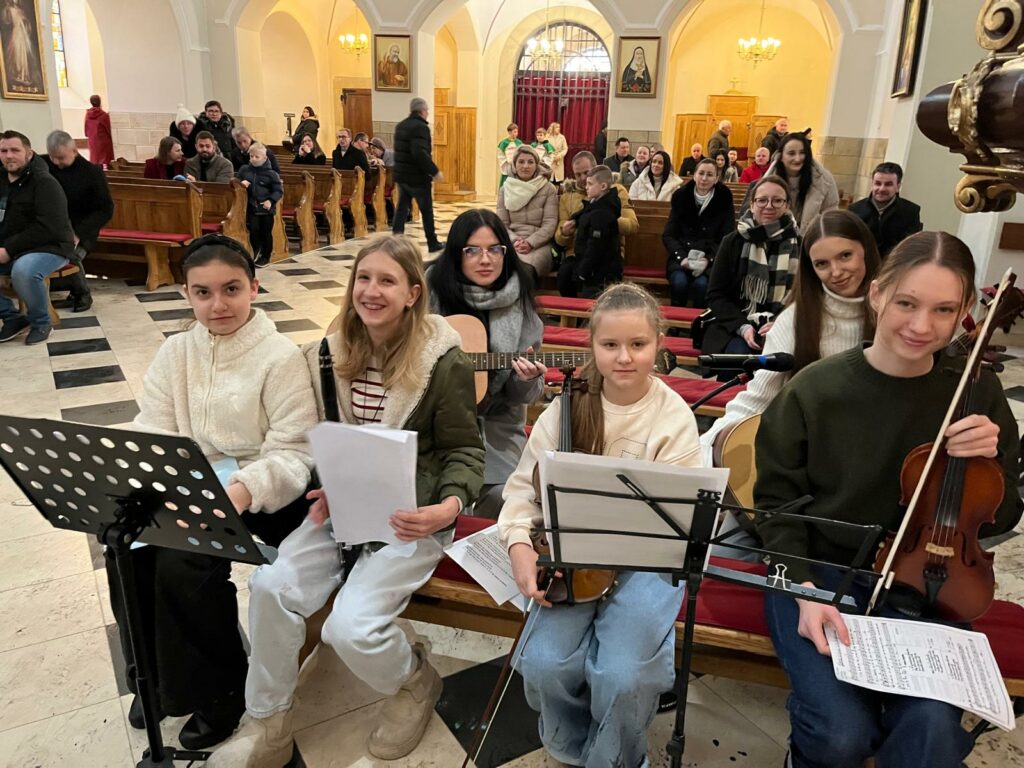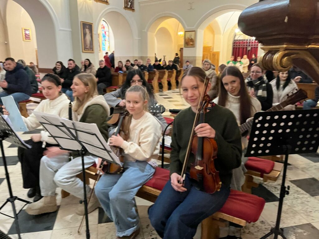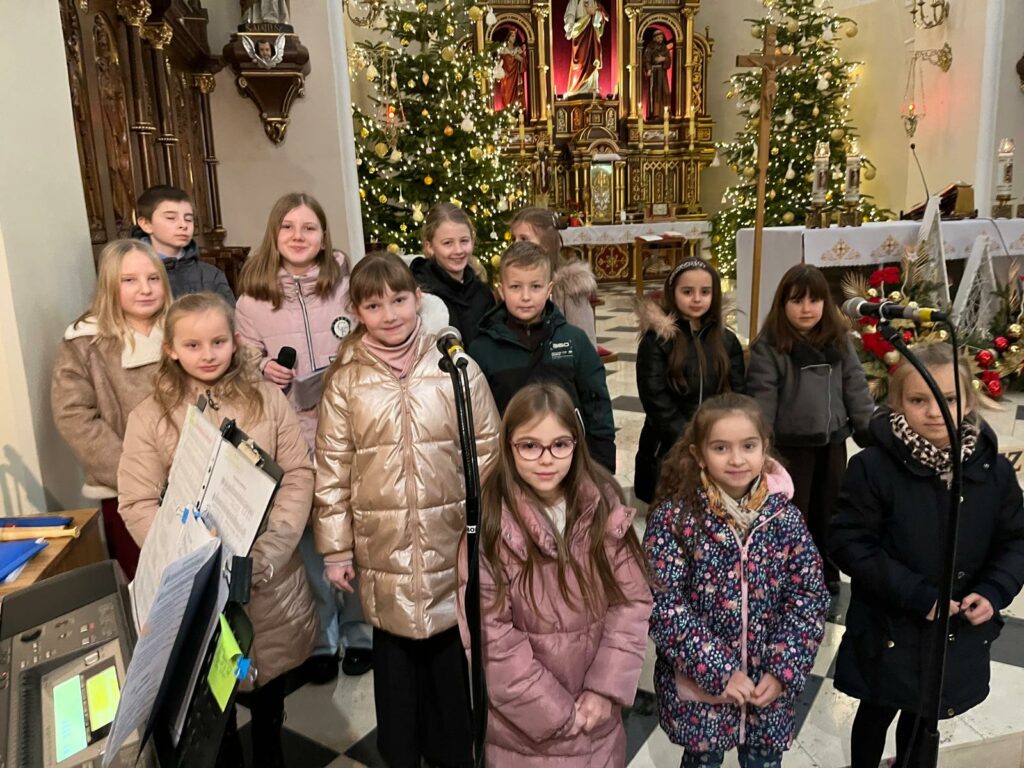 W czasie mszy świętej o 9.45 celebrowanej przez ks. proboszcza Bogusława Pasierba i ks. Piotra Klóskę oprawę muzyczną- kolędową przygotowała Schola Parafialna pod kierunkiem pani Małgorzaty Świątko z akompaniamentem Młodzieżowego Zespołu.