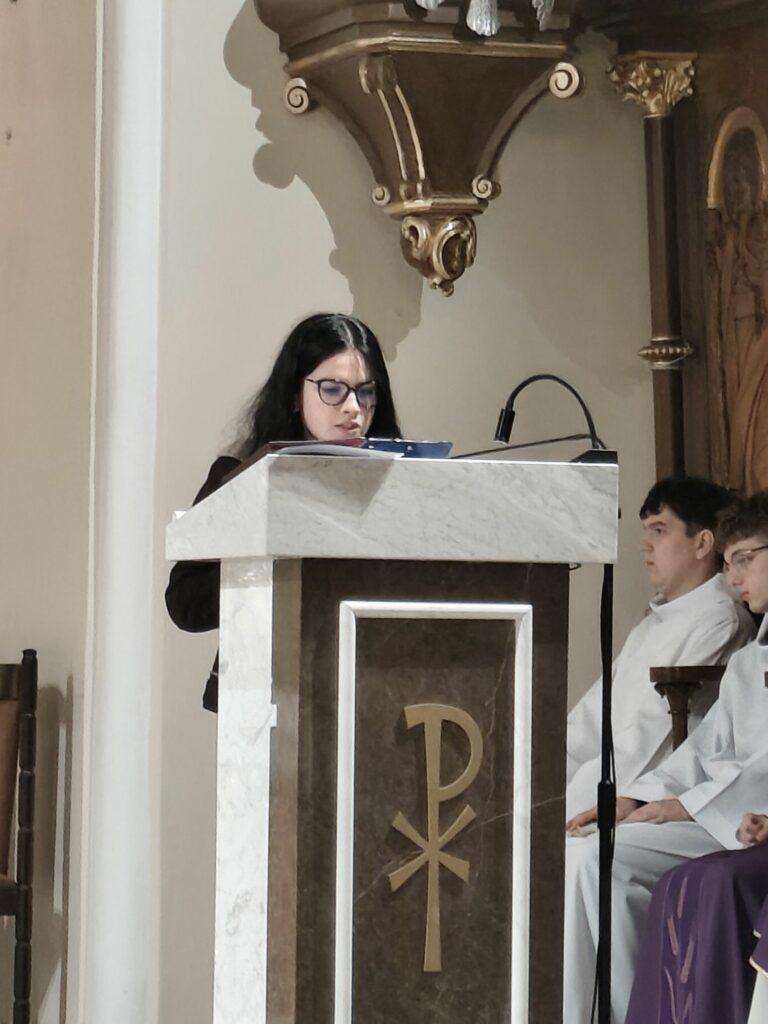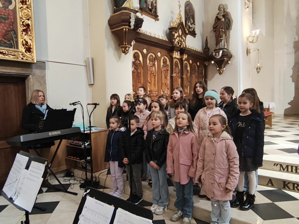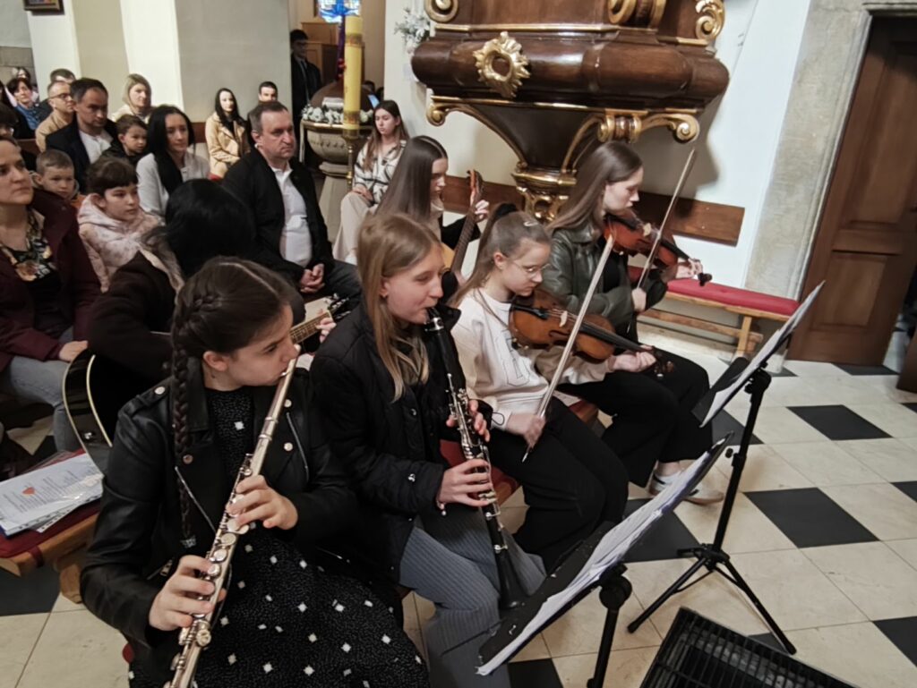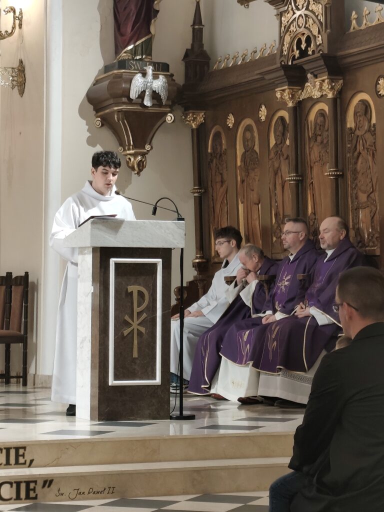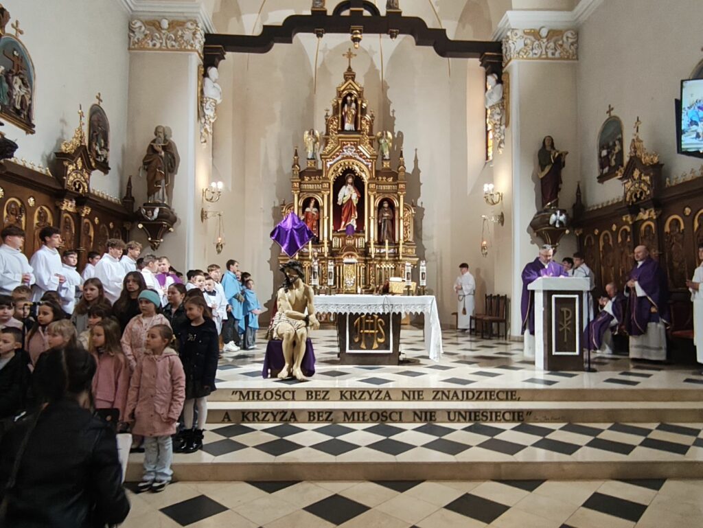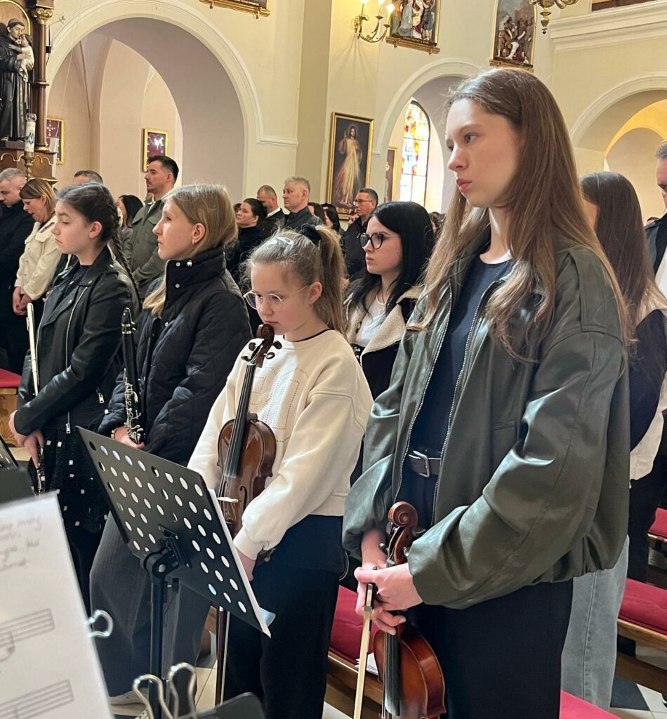 Mszę św. o godz. 11.00 celebrowaną przez ks. Piotr Klóskę, ks. Jana Wąchałę i ks. Mariusza Berko uświetniła pięknym śpiewem Schola Parafialna pod kierunkiem. Małgorzaty Świątko z towarzyszeniem Młodzieżowego Zespołu Muzycznego w składzie: M. Sroka ( gitara), M. Duś ( gitara), K. Błoniarz ( skrzypce), K. Marzec ( skrzypce), W. Kępa ( klarnet). M. Stach ( flet poprzeczny). Przy kościele miedzy mszami Szkolne Koło Caritas z Bytomska rozprowadzało palmy wielkanocne.