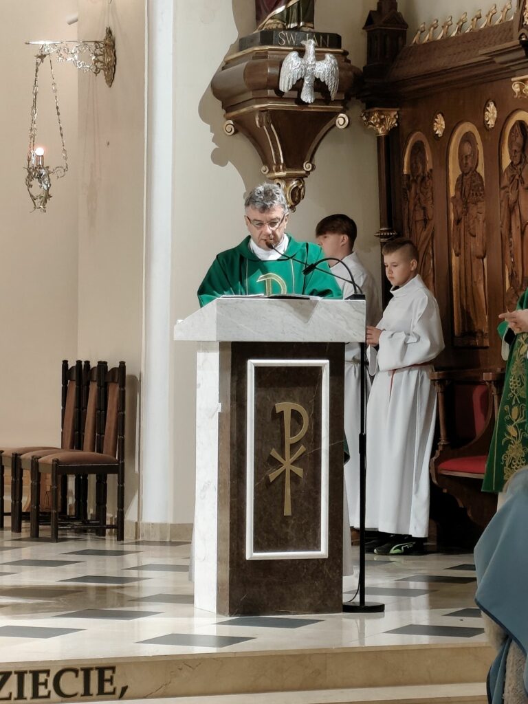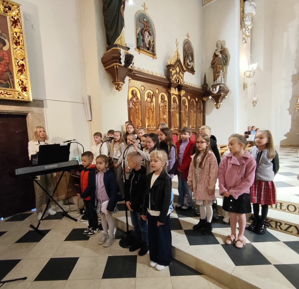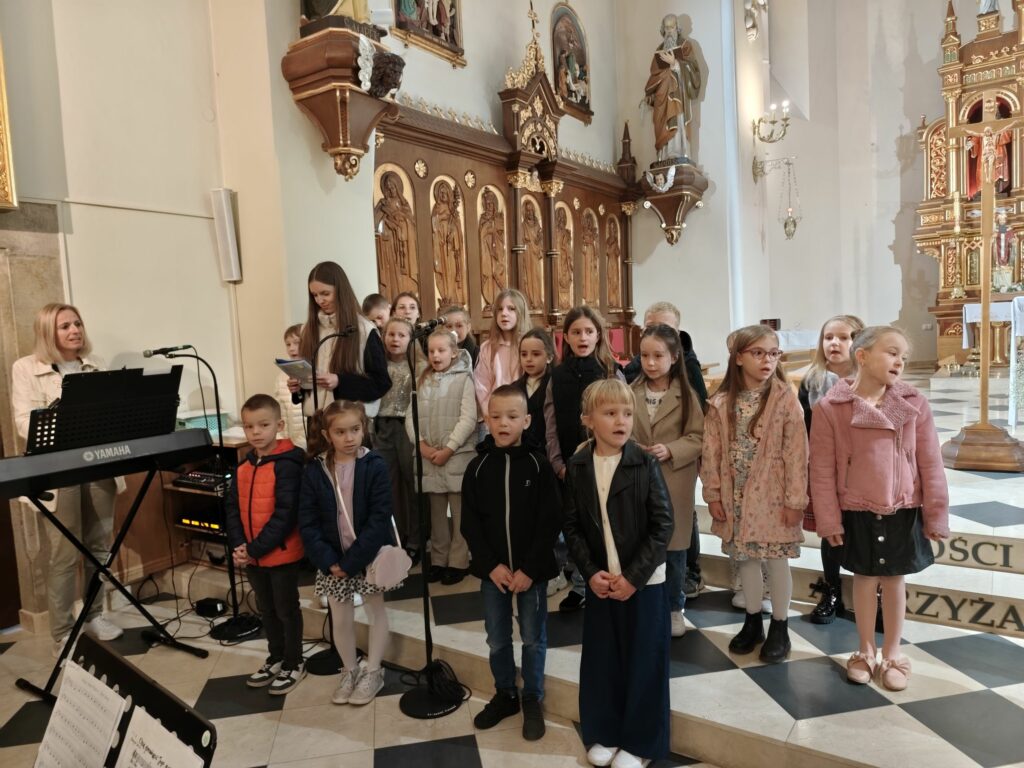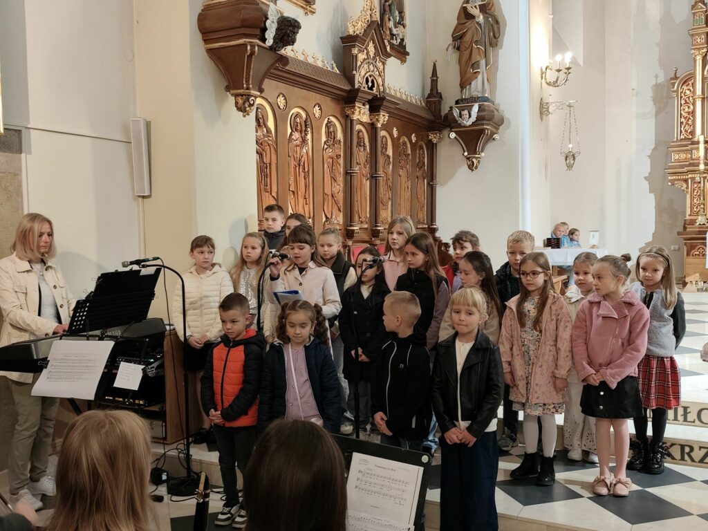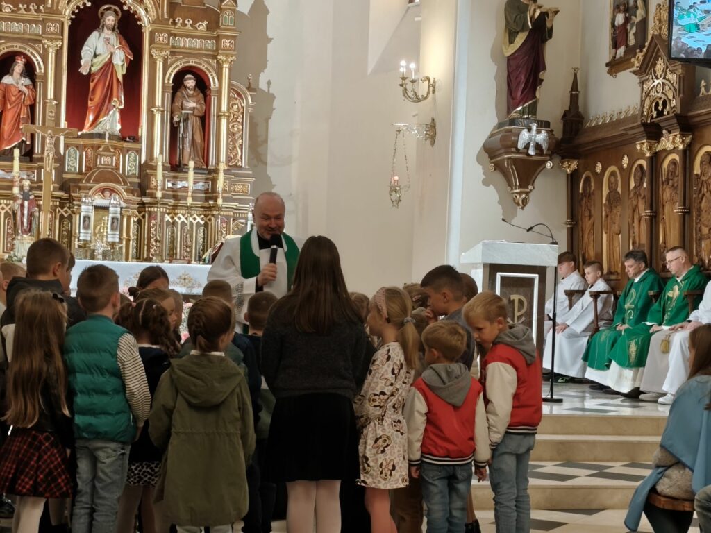 W niedzielę 5 października Mszę św. dla dzieci celebrowaną przez ks. proboszcza Bogusława Pasierba i ks. Piotra Klóskę, uświetniła pięknym śpiewem Schola Parafialna. Kazanie do dzieci wygłosił także ks. Mariusz Berko. Schola rozpoczęła prace po wakacjach Na zajęcia zespołu uczęszczają dzieci w wieku 6-12 lat. Scholę prowadzi Pani Organistka Małgorzata Świątko. Próby odbywały się we czwartki po wieczornej Mszy św. w salce na plebanii. Scholę przez cały rok pracy wspiera młodzieżowy zespół muzyczny w składzie: Karolina Błoniarz ( skrzypce), Marysia S. ( gitara), Milena D. (gitara), Natalia K. ( gitara) Magda S. ( flet poprzeczny) Weronika K. ( klarnet). Na zakończenie mszy świętej ks. Proboszcz podziękował Pani Organistce i dzieciom za piękny śpiew, a wierni obecni na nabożeństwie podziękowali gromkimi brawami. Dziękujemy rodzicom za pomoc i podwożenie dzieci na próby.