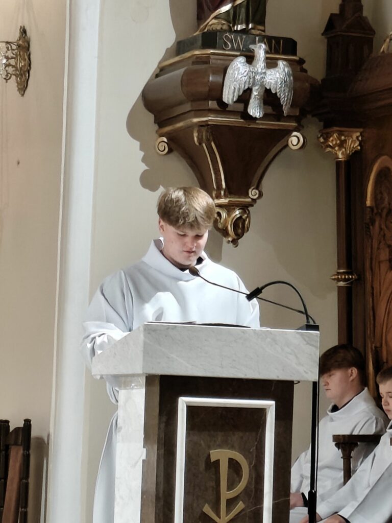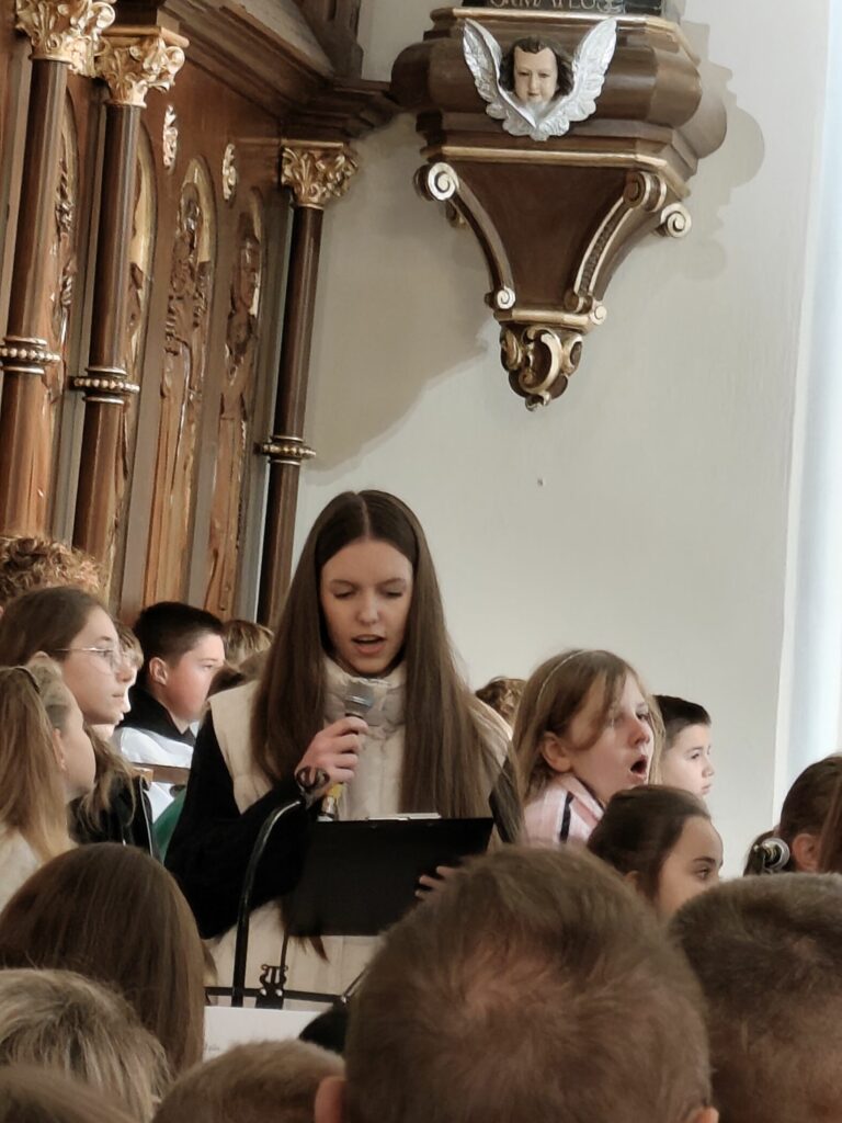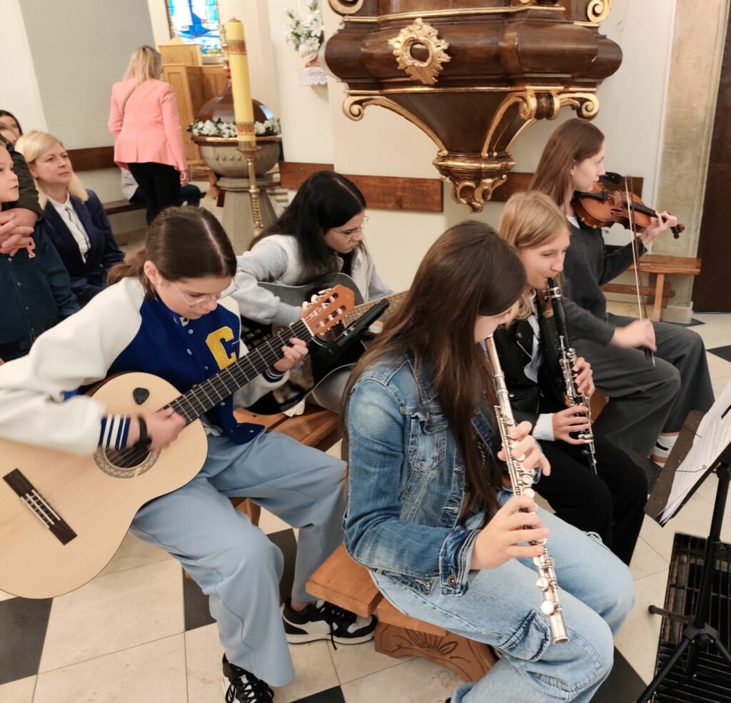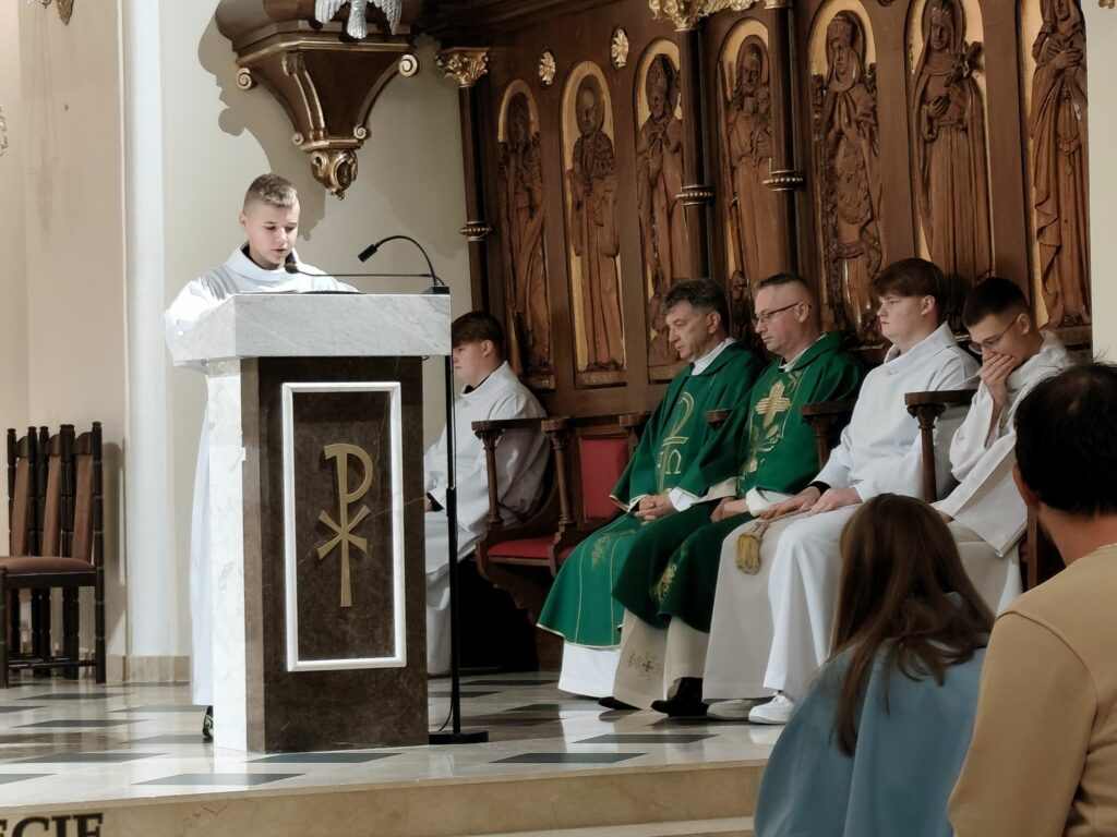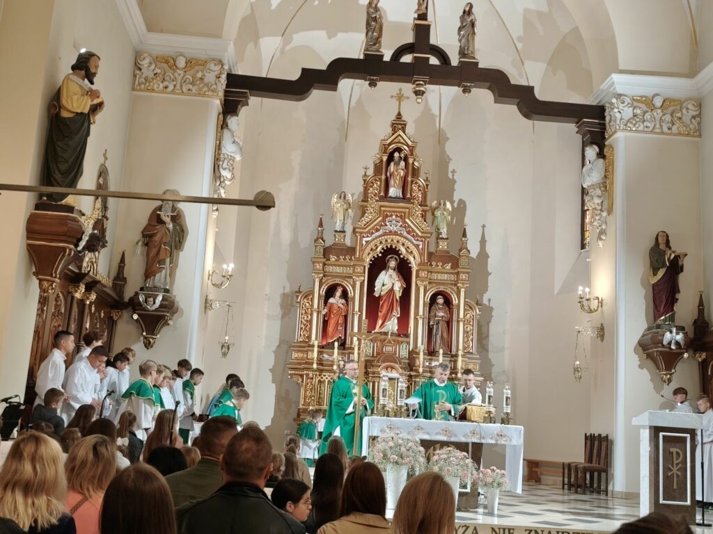 W niedzielę 5 października Mszę św. dla dzieci celebrowaną przez ks. proboszcza Bogusława Pasierba i ks. Piotra Klóskę, uświetniła pięknym śpiewem Schola Parafialna. Kazanie do dzieci wygłosił także ks. Mariusz Berko. Schola rozpoczęła prace po wakacjach Na zajęcia zespołu uczęszczają dzieci w wieku 6-12 lat. Scholę prowadzi Pani Organistka Małgorzata Świątko. Próby odbywały się we czwartki po wieczornej Mszy św. w salce na plebanii. Scholę przez cały rok pracy wspiera młodzieżowy zespół muzyczny w składzie: Karolina Błoniarz ( skrzypce), Marysia S. ( gitara), Milena D. (gitara), Natalia K. ( gitara) Magda S. ( flet poprzeczny) Weronika K. ( klarnet). Na zakończenie mszy świętej ks. Proboszcz podziękował Pani Organistce i dzieciom za piękny śpiew, a wierni obecni na nabożeństwie podziękowali gromkimi brawami. Dziękujemy rodzicom za pomoc i podwożenie dzieci na próby.