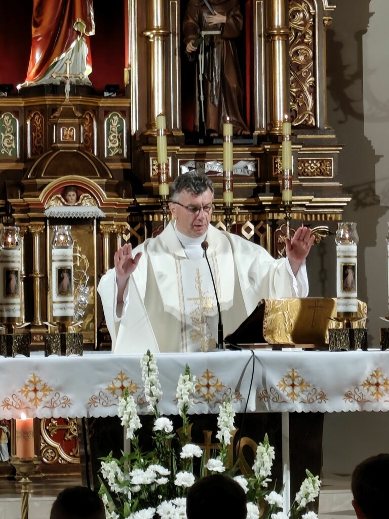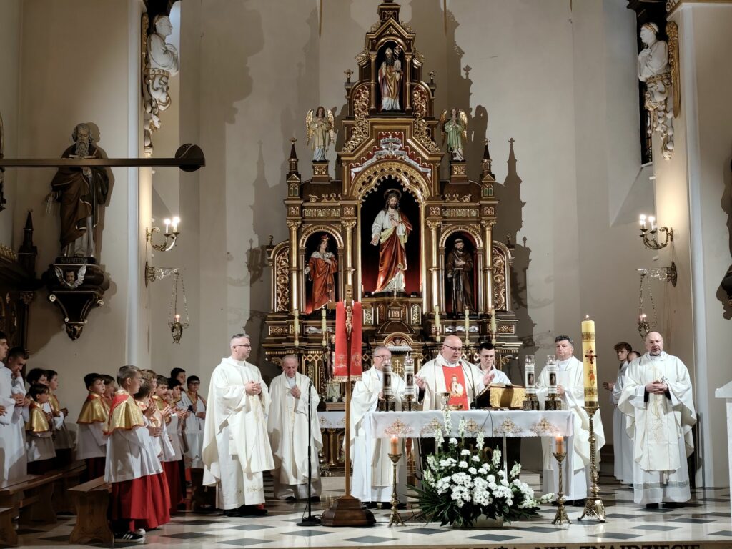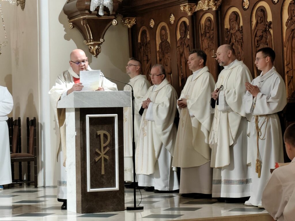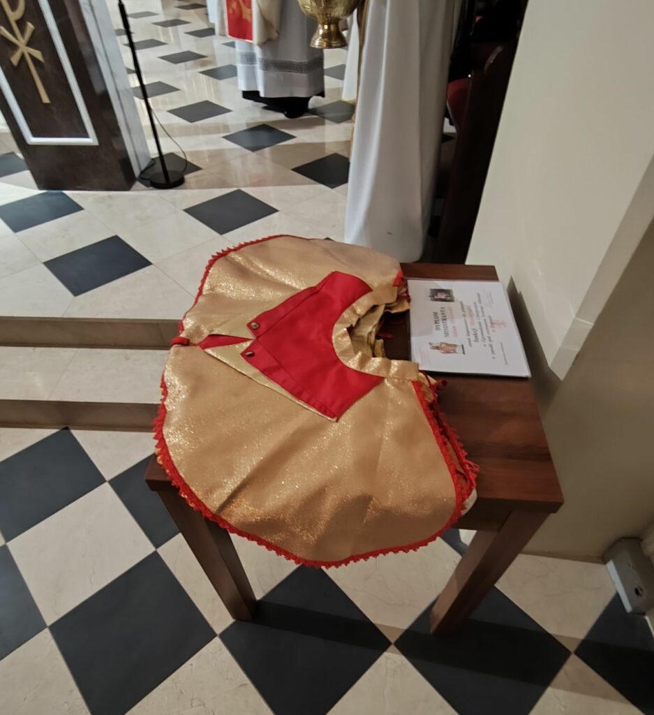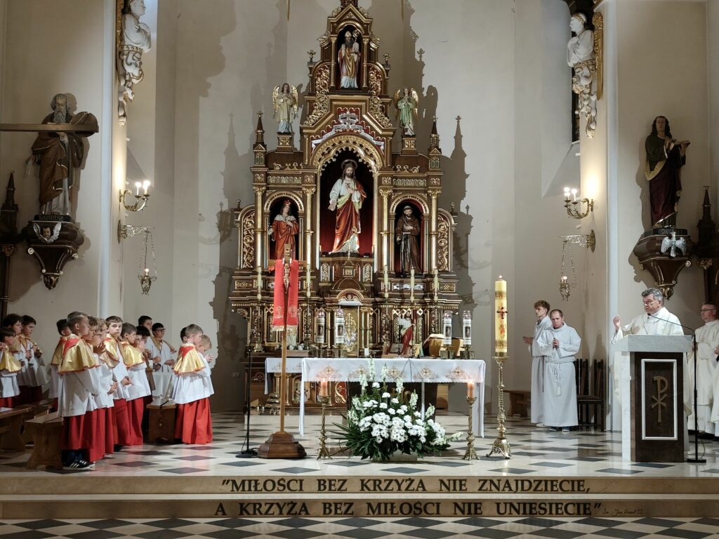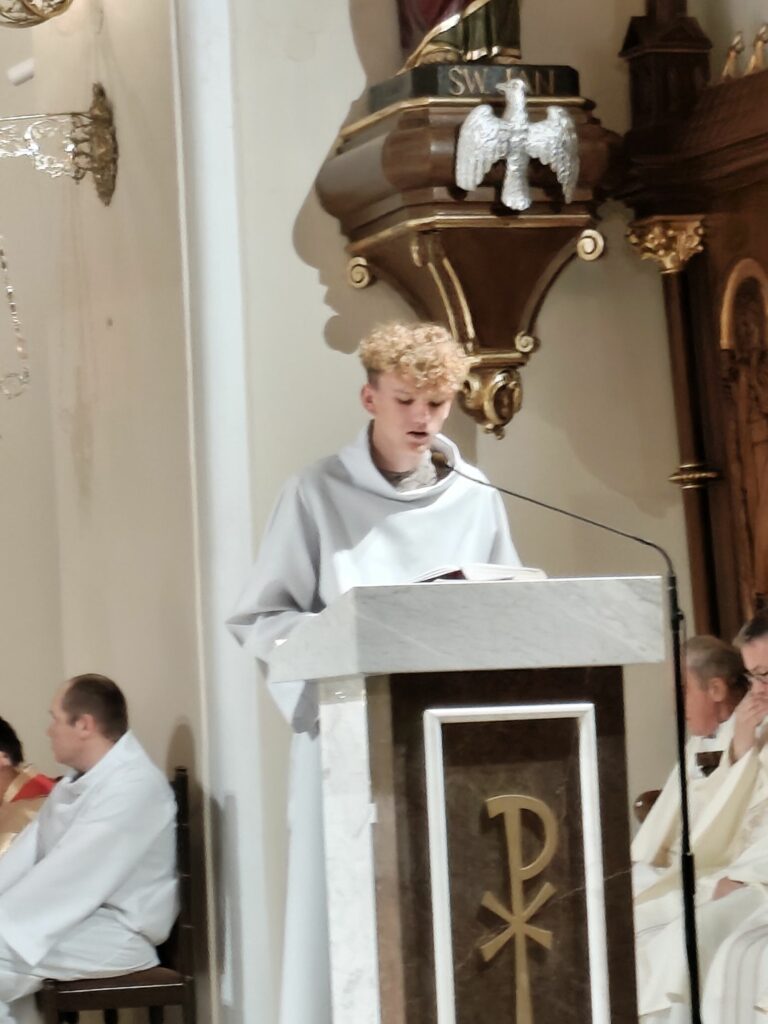 osoba posługująca w liturgii, najczęściej w czasie sprawowania Eucharystii, a także nabożeństw poza Mszą świętą. Podczas mszy świętej w dniu 4 czerwca 2025 roku celebrowanej przez: ks. Proboszcza Bogusława Pasierba, ks. Piotra Klóskę, ks. Jana Wąchałę, Ks. Mariusza Berko, ks. Roberta Osaka oraz ks. Jubilata Stanisława Szczygła, który w niedzielę świętował 50 – lecie Święceń Kapłańskich 17 chłopców z Bełdna, Bytomska, Rozdziela i Żegociny zostało przez proboszcza – ks. Bogusława Pasierba włączonych do ministranckiej służby. Byli to: Jakub Kokoszka, Adam Mirowski, Wojciech Kania, Wiktor Kowal, Tymon Dziedzic, Tomasz Mittman, Szymon Łyszczarz, Norbert Paczek, Maksymilian Staszak, Maksymilian Dziedzic, Łukasz Dudzic, Konrad Janiczek, Jan Ogiela, Igor Kaczmarczyk, Bartłomiej Kukla, Dawid Dziedzic, Dominik Obrzut – To wielki dar dla Parafii, Dziękuję Wam – Rodzice nowych ministrantów, że w Waszych domach jest klimat kościoła, klimat taki, że ci chłopcy mogą wstawać nieraz bardzo wcześnie rano, by stanąć przy ołtarzu. Gratuluję Wam Rodzice ! Kochani chłopcy – nowi ministranci ! Życzę Wam, byście się tu – przy ołtarzu – dobrze czuli, by każdy z Was mówił przy ołtarzu – dobrze mi tu być ! Całą parafię i wszystkich tu zgromadzonych proszę o modlitwę, by cała służba liturgiczna: lektorzy, ministranci, kantorzy – tu przy ołtarzu dobrze się czuli – mówił ks. Bogusław Pasierb – proboszcz parafii-, zwracając się do zebranych w kościele parafian. Podziękował również ks. Robertowi Osakowi – opiekunowi LSO. Każdemu z nowych ministrantów ksiądz proboszcz założył na ramiona pelerynkę, a ksiądz opiekun wręczył dyplomy Ministranta. Po tej uroczystości nowi ministranci będą mogli m. in. nosić krzyż i Świętą Księgę, dawać znaki dzwonkami, podawać dary ofiarne, nosić kadzidło i światło. Uroczystość zakończono wspólnym zdjęciem.