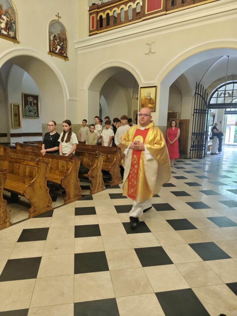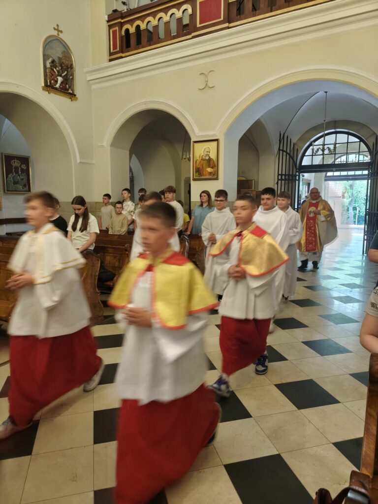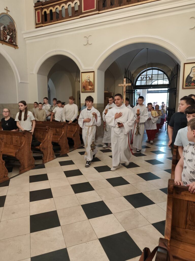 Patronki Szkoły Podstawowej w Żegocinie– Świętej Kingi. Z tej okazji uczniowie klas 3-8 wraz z dyrektorem, nauczycielami, pracownikami i przedstawicielami rodziców modlili się 16 czerwca 2025r. w naszym kościele parafialnym, dziękując za szczęśliwy rok szkolny dla całej społeczności. Mszę św. celebrował ks. Robert Osak, czytania. Modlitwę wiernych przygotowali uczniowie klasy 8, śpiew prowadził chór szkolny pod kierunkiem Pani Anny Maurer – Pasionek. Zapraszamy do galerii zdjęć.