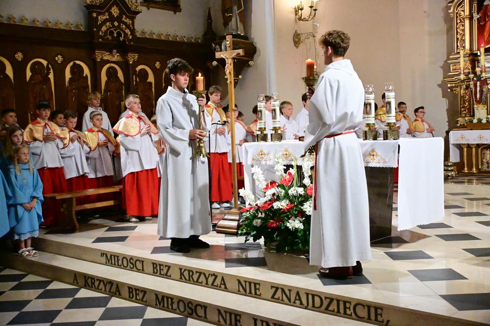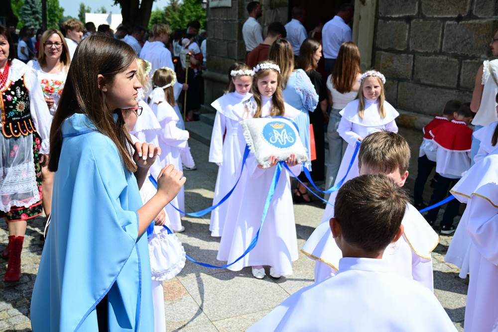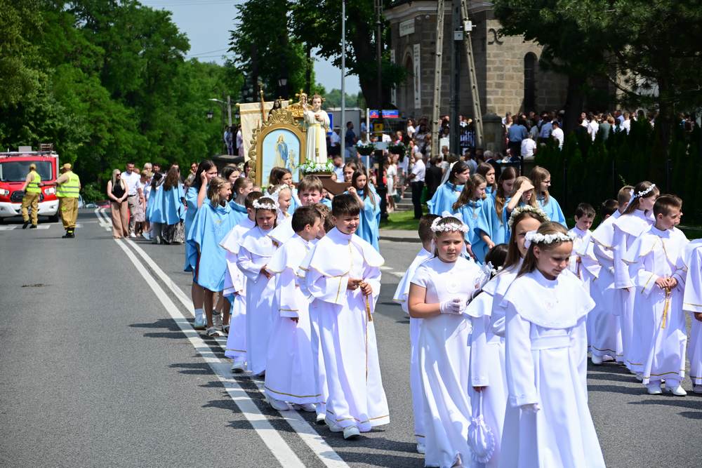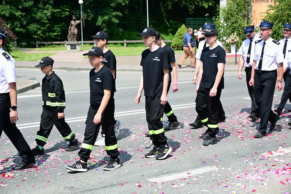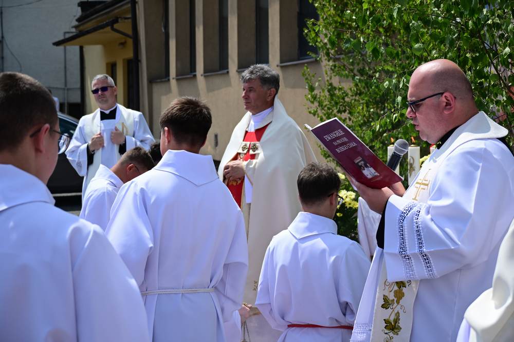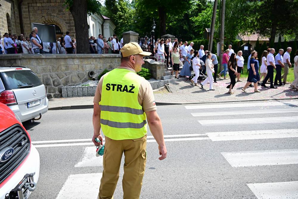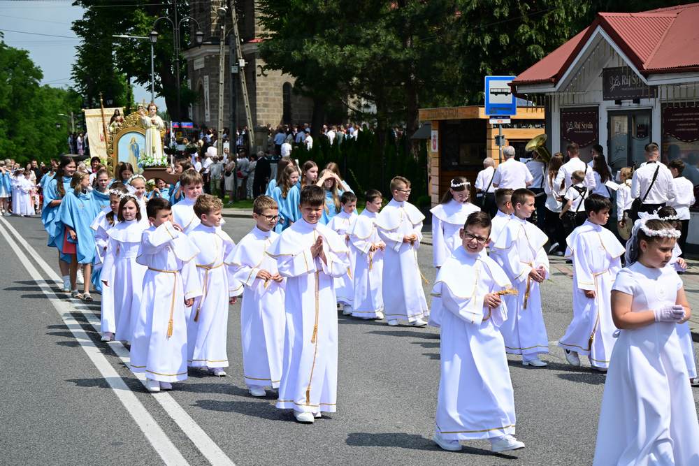 który w tym roku wypadł na 19 czerwca, została odprawiona o godz. 10.00 w koncelebrze pod przewodnictwem ks. Proboszcza Bogusława Pasierba w asyście wystąpił: ks. Jan Wąchała, ks. Mariusz Berko, ks. Józef Cempura. Boże Ciało jest to jedno z najważniejszych świąt katolickich, w czasie którego wierni wyznają wiarę w obecność Jezusa Chrystusa w Najświętszym Sakramencie. Po liturgii eucharystycznej następuje procesja do czterech ołtarzy. Przy każdym z nich odmawia się modlitwy i czyta ewangelię. Na zakończenie procesji kapłan udziela wiernym błogosławieństwa. Boże Ciało to święto ruchome, które przypada zawsze 60 dni po Wielkanocy. W Polsce obchodzi się je w czwartek po Uroczystości Trójcy Świętej. Cztery ołtarze symbolizują czterech Ewangelistów i cztery strony świata. Po zakończeniu mszy świętej i wystawieniu Najświętszego Sakramentu z kościoła wyszła procesja, zabezpieczana przez strażaków OSP w Żegocinie, którzy także nieśli baldachim oraz wspólnie z druhami z OSP w Bełdnie i OSP w Bytomsku asystowali w strażackim pododdziale. Przy dźwiękach dzwonów, muzyce Orkiestry Dętej CKSiT w Żegocinie pod batutą Pana Mieczysława Kędry, ze śpiewem na ustach barwny orszak procesyjny przemierzał trasę do ustawionych, w tych samych miejscach, co w latach poprzednich, czterech ołtarzy, przygotowanych kolejno przez parafian z Bełdna, Rozdziela, Bytomska i Żegociny. Obecne były dzieci pierwszokomunijne ubrane w białe stroje, dziewczynki w krakowskich strojach sypiące wielobarwne kwiaty, chłopcy w komeżkach z czerwonymi pelerynkami dzwoniący małymi dzwonkami. Niesiono kościelne chorągwie i feretrony oraz figurę Matki Bożej Fatimskiej. Przy każdym z ołtarzy, kapłani czytali fragmenty poszczególnych Ewangelii. Śpiewano suplikacje, hymn „Ciebie Boga wysławiamy”, a na zakończenie ks. Bogusław Pasierb pobłogosławił uczestników procesji Najświętszym Sakramentem. Na zakończenie podziękował za przygotowanie ołtarzy, zabezpieczenie ruchu drogowego, za udział w procesji i jej uświetnienie przez orkiestrę, strażaków i dzieci. Procesje w kolejne dni odbywać się będą wokół kościoła. Zapraszamy do galerii zdjęć.