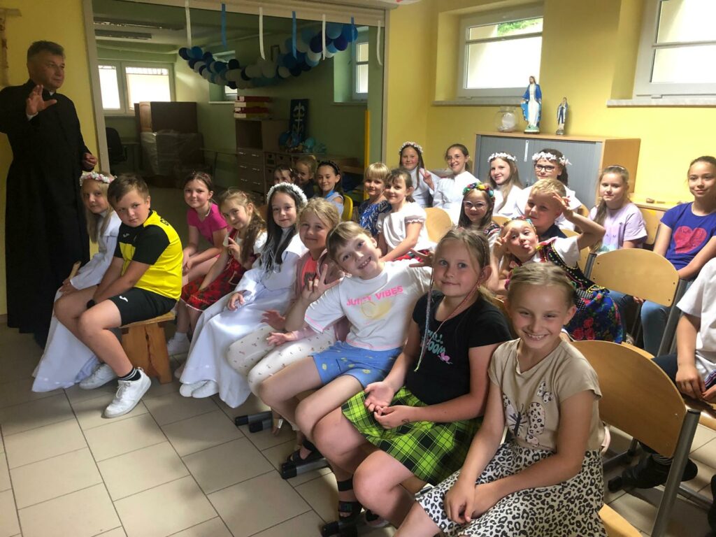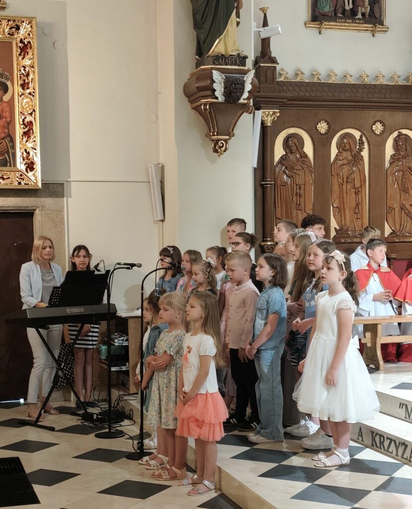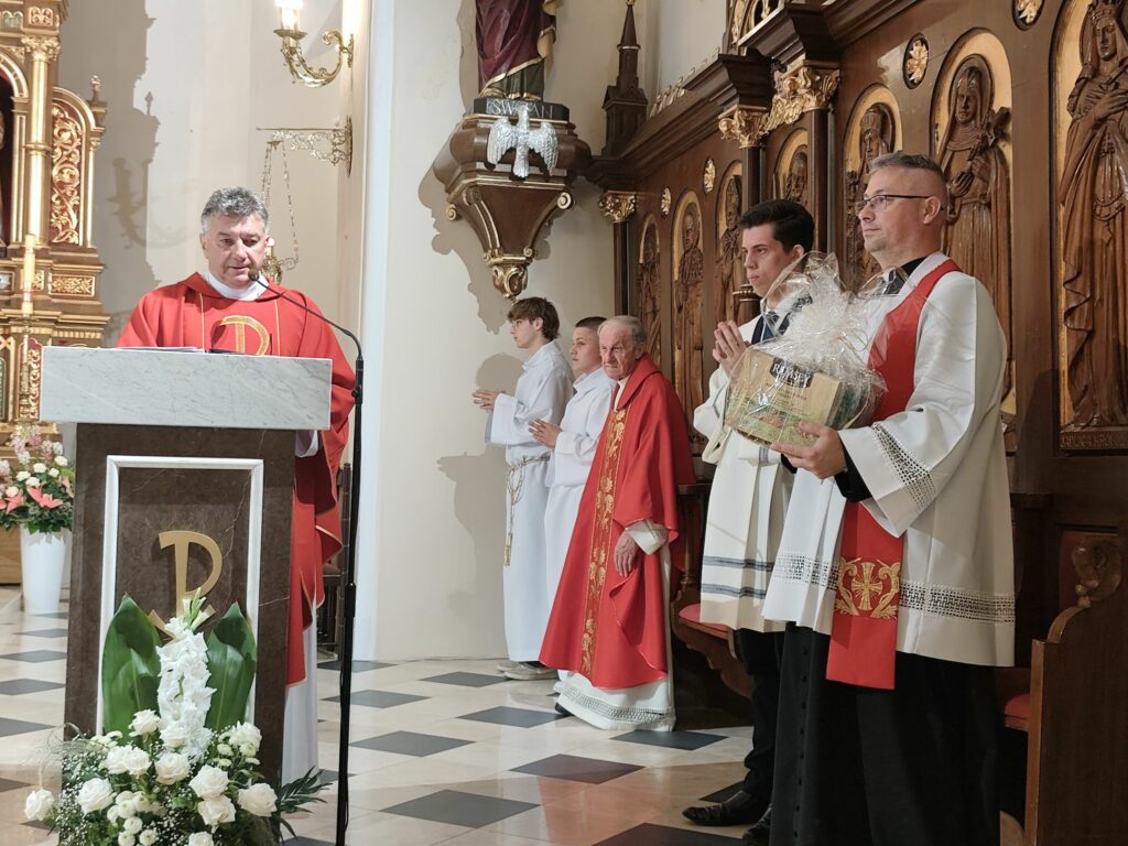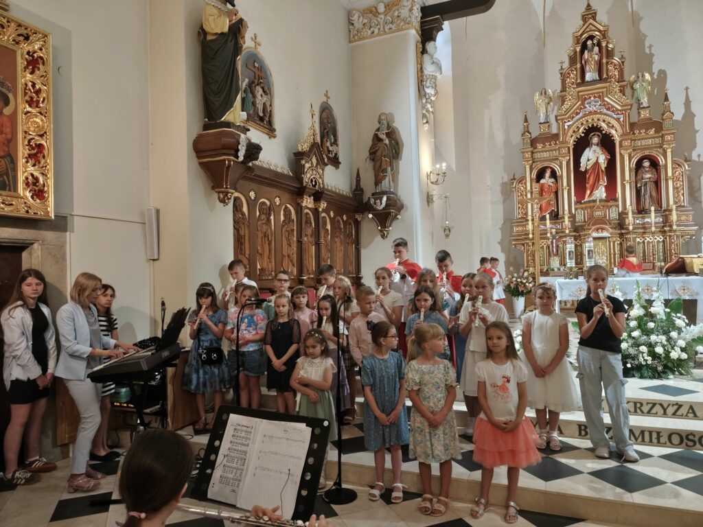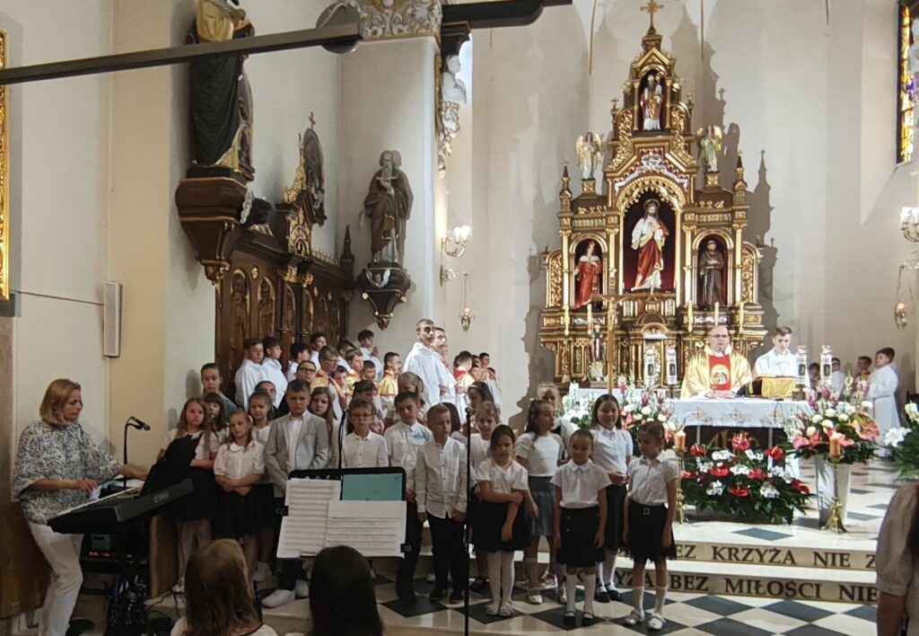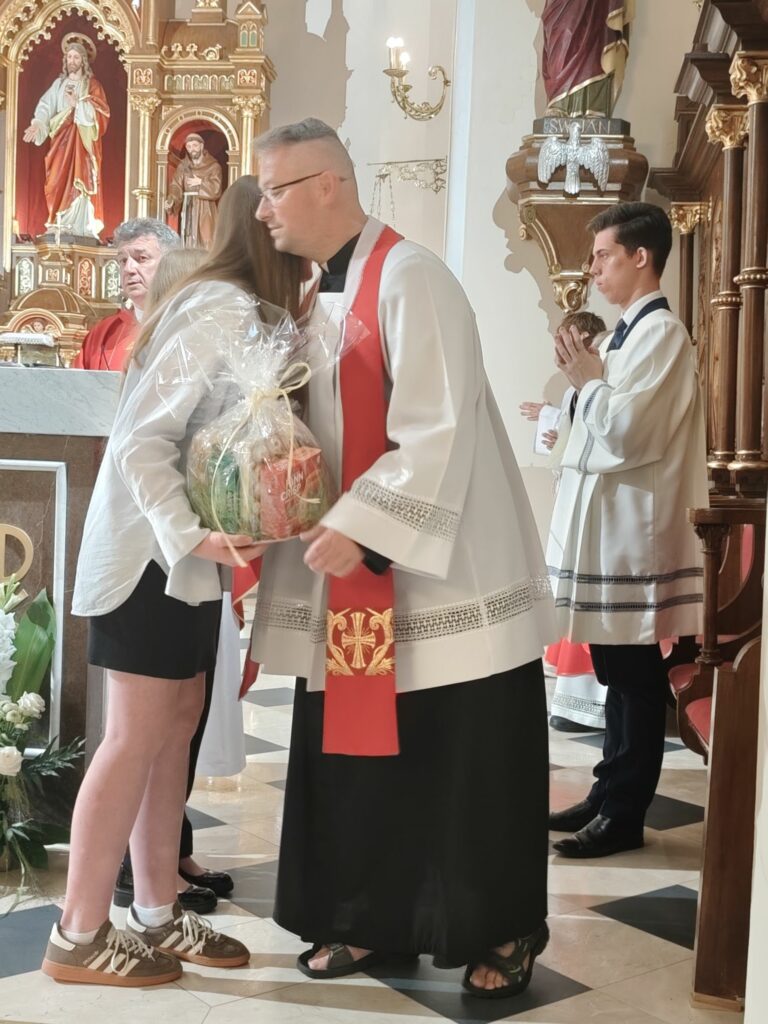 W niedzielę 29 czerwca Mszę św. dla dzieci celebrowaną przez ks. proboszcza Bogusława Pasierba i ks. Jana Wąchałę, uświetniła pięknym śpiewem Schola Parafialna. Kazanie wygłosił także ks. Piotr Klóska , który obchodził swoje imieniny. Na zakończenie mszy delegacja parafian złożyła solenizantowi życzenia. Do życzeń dołączył się także ks. proboszcz życząc między innymi ks. Piotrowi szybkiego probostwa.
