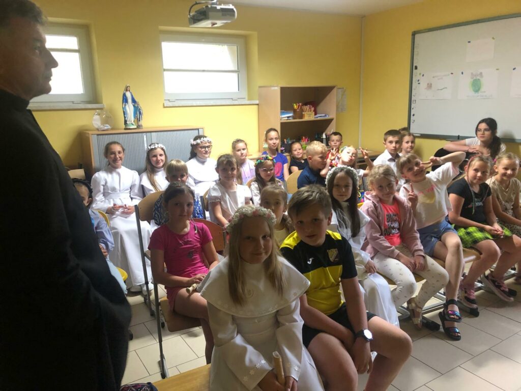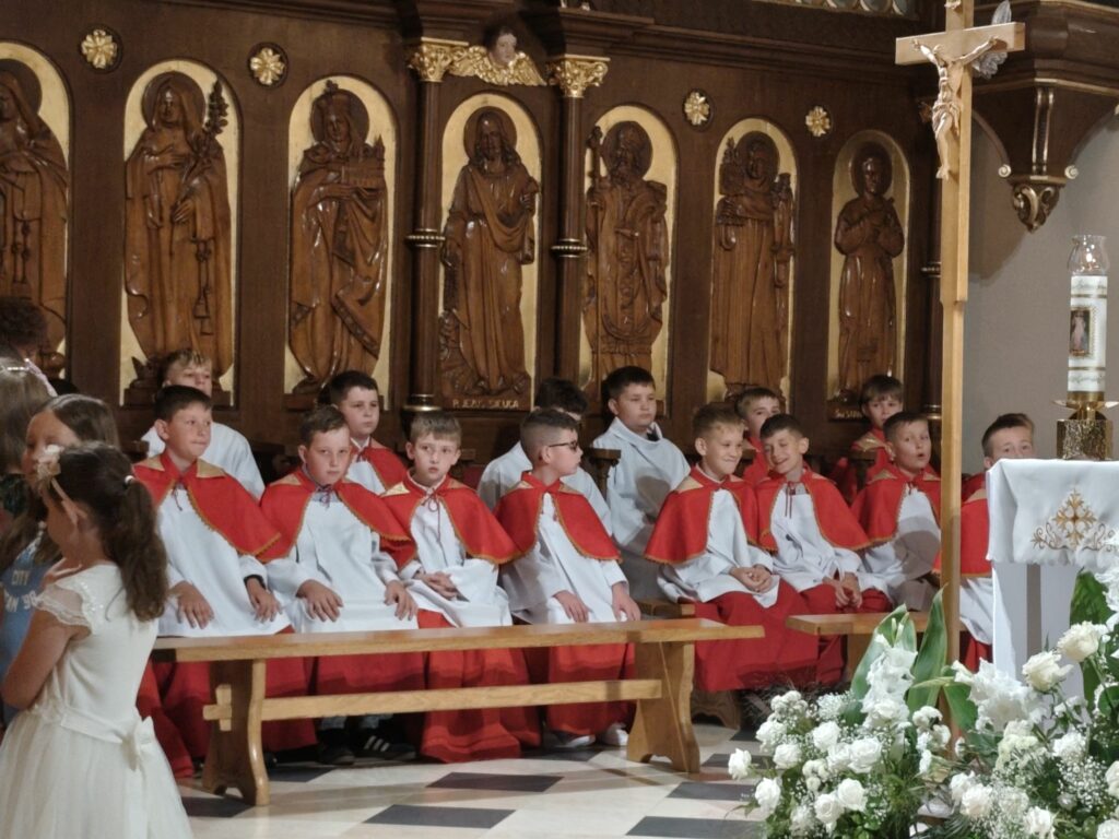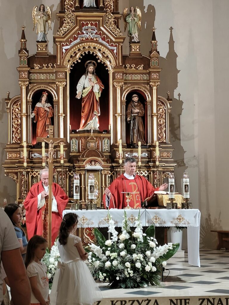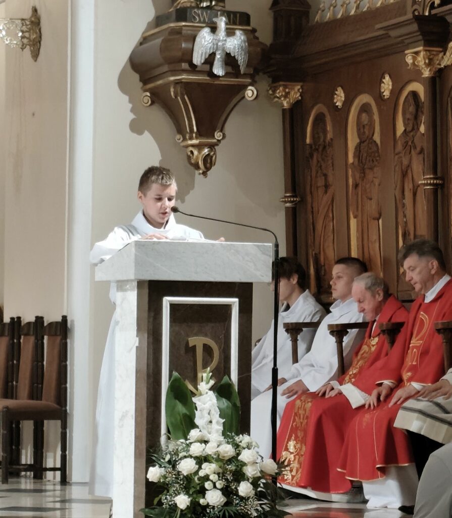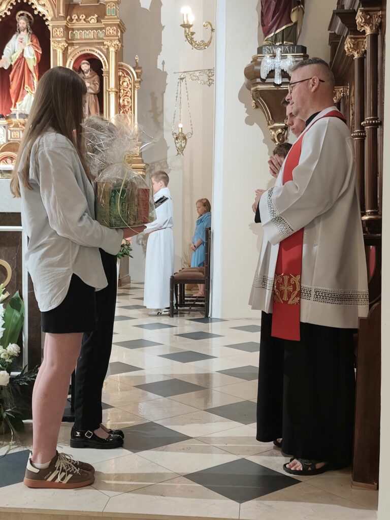 W niedzielę 29 czerwca Mszę św. dla dzieci celebrowaną przez ks. proboszcza Bogusława Pasierba i ks. Jana Wąchałę, uświetniła pięknym śpiewem Schola Parafialna. Kazanie wygłosił także ks. Piotr Klóska , który obchodził swoje imieniny. Na zakończenie mszy delegacja parafian złożyła solenizantowi życzenia. Do życzeń dołączył się także ks. proboszcz życząc między innymi ks. Piotrowi szybkiego probostwa.