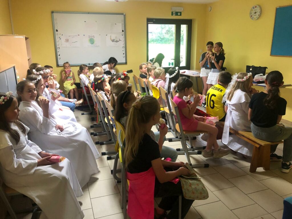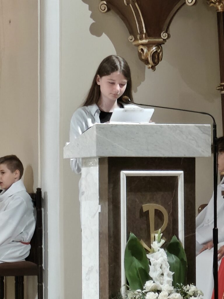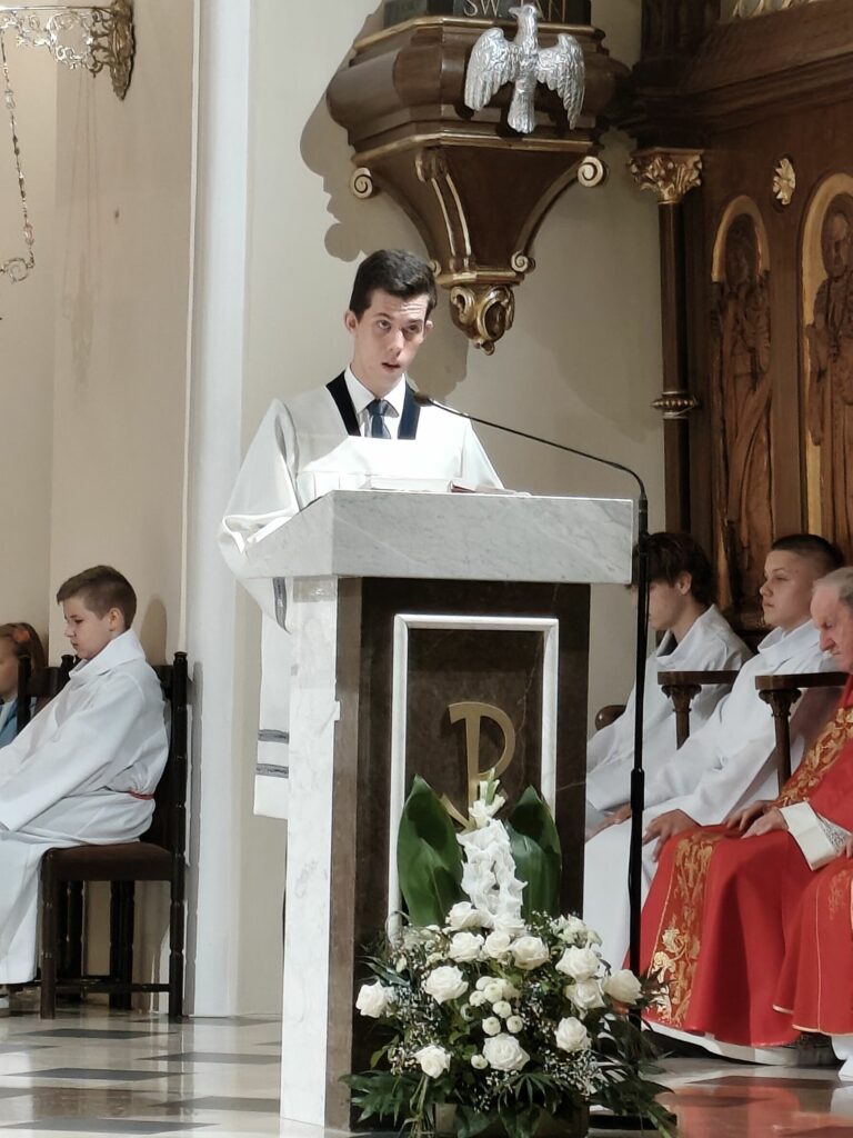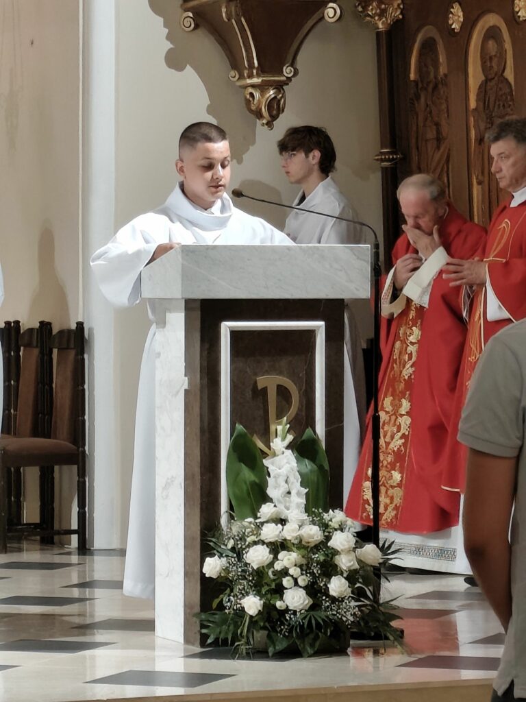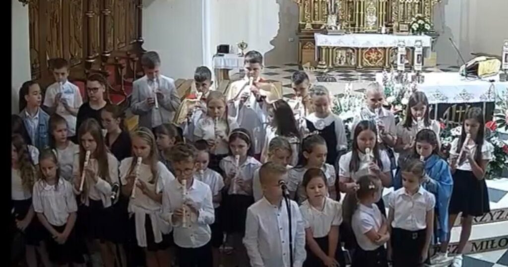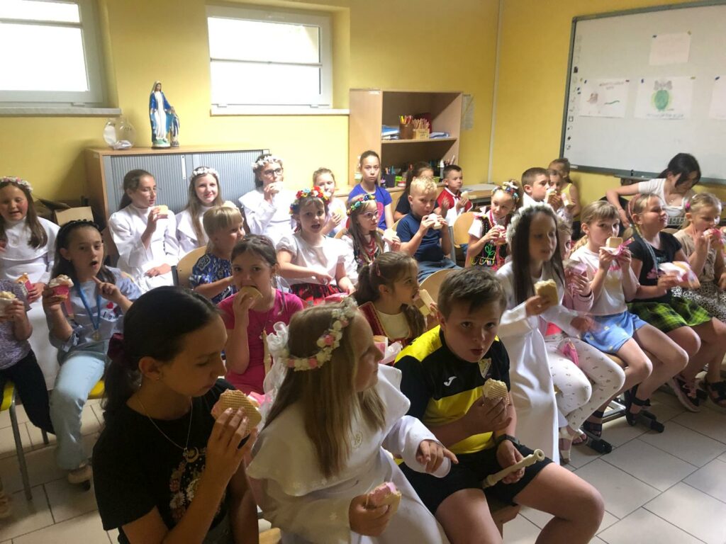 W niedzielę 29 czerwca Mszę św. dla dzieci celebrowaną przez ks. proboszcza Bogusława Pasierba i ks. Jana Wąchałę, uświetniła pięknym śpiewem Schola Parafialna. Kazanie wygłosił także ks. Piotr Klóska , który obchodził swoje imieniny. Na zakończenie mszy delegacja parafian złożyła solenizantowi życzenia. Do życzeń dołączył się także ks. proboszcz życząc między innymi ks. Piotrowi szybkiego probostwa.