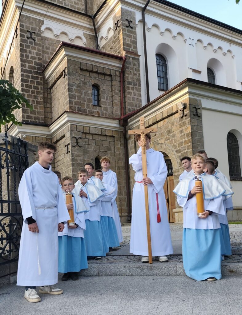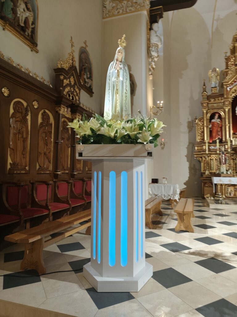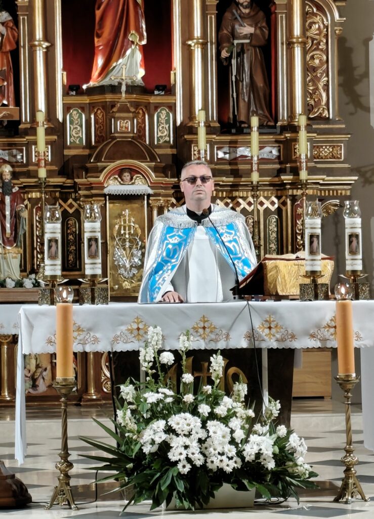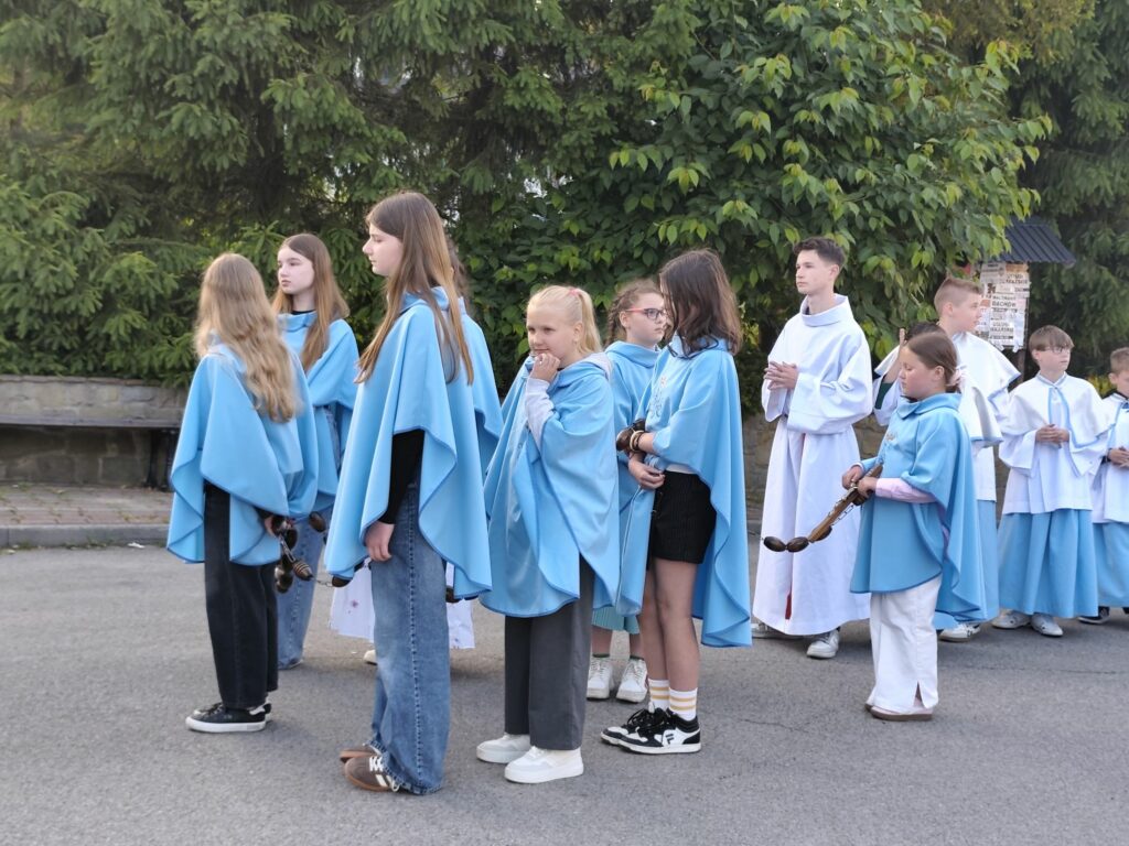 13 października 2024r. w naszym kościele odbyło się ostatnie w tym roku kalendarzowym Nabożeństwo fatimskie. Pogoda była pochmurna i deszczowa, ale procesja zgromadziła wielu parafian. Różaniec odmawiały siostry z Róży Świętej Weroniki zelatorki Marii Wrona, a figurę nieśli druhowie strażacy, tylko trzy dziesiątki odmówiono w czasie procesji, bo się rozpadało i dwie dziesiątki odmówili wierni w kościele. Na zakończenie nabożeństwa Ks. Proboszcz podziękował wszystkim zebranym za pobożny i liczny udział we wszystkich nabożeństwach fatimskich. Pobłogosławił zebranych, po czym śpiewem pieśni „ Pozdrawiam Ciebie Matko” zakończyła się ostatnia w tym roku fatimska procesja.