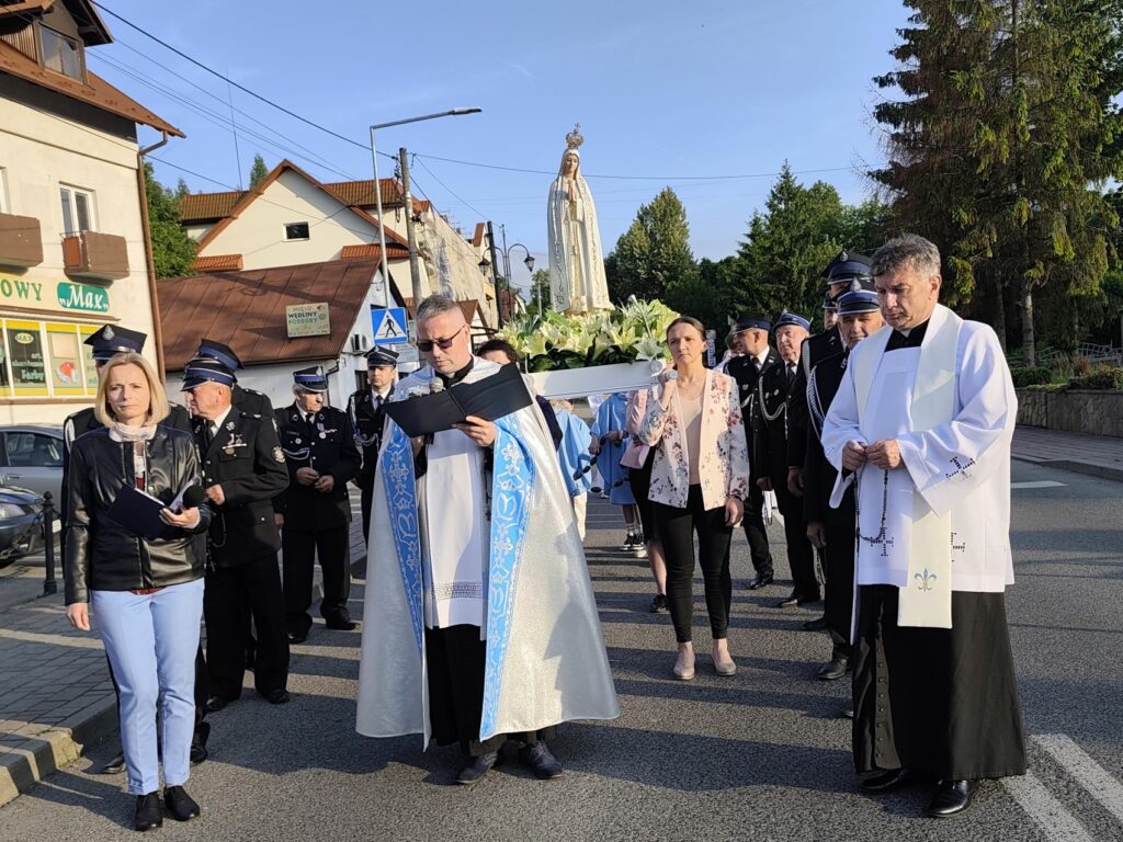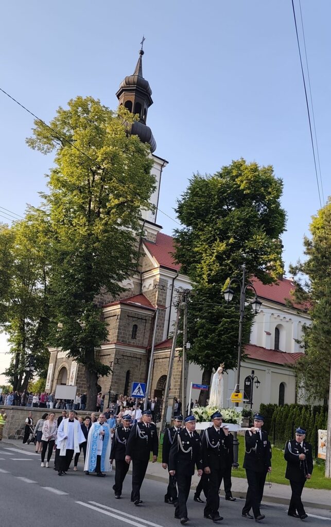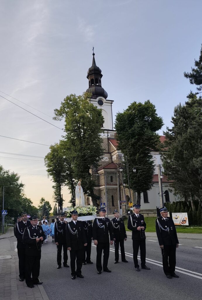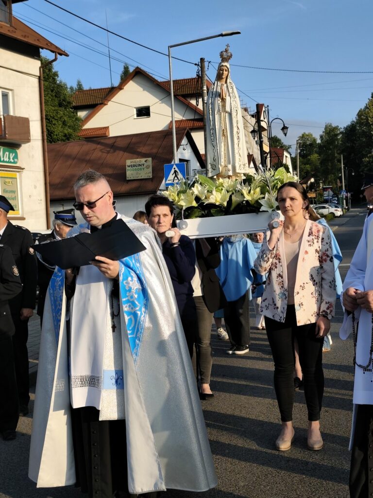 W sierpniu Maryja nie zjawiła się 13 dnia miesiąca w Cova da Iria, ponieważ dzieci zostały zatrzymane przez miejscowego starostę. Objawienie miało miejsce 19 sierpnia w Valinhos. Dlatego w poniedziałek 19 sierpnia w naszej parafii odbyło się kolejne nabożeństwo fatimskie. Najpierw była Eucharystia celebrowana przez ks. Proboszcza Bogusława Pasierba, ks. Roberta, ks. Piotra i ks. Józefa Głowę, a na zakończenie procesja fatimska w czasie której w mówienie różańca zaangażowana była Róża świętej Heleny zolatorki Stanisławy Leśniak. Figurę Maryi jak zwykle nieśli strażacy, matki i ojcowie. Strażacy tez zabezpieczyli trasę procesji. Pogoda była burzowa i pochmurna, ale nabożeństwo jak zwykle zgromadziło wielu parafian i gości.