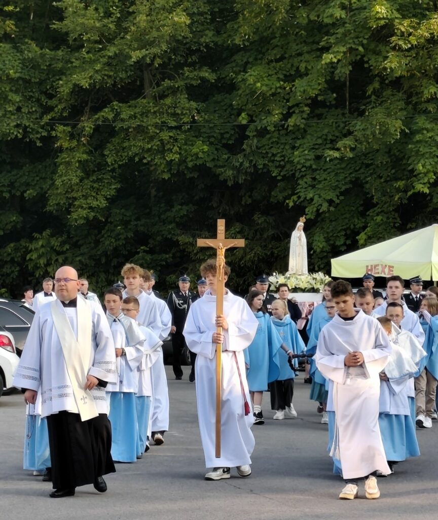 13 czerwca 2025 r. o 18.00 w naszej parafii po Mszy św. celebrowanej przez ks. Proboszcza Bogusława Pasierba, ks. Jubilata Stanisława Szczygła, ks. Piotra Klóskę, ks. Roberta Osaka i ks. Jana Wąchałę, rozpoczęła się II Procesja Fatimska w tym roku. Prowadził ją ks. Piotr, różaniec odmawiały siostry z Róży Różańcowej Św. Jadwigi Królowej zelatorki Anny Zbyrowskiej, a figurę nieśli druhowie strażacy oraz kobiety z w/w Róży i mężczyźni. Pogoda dopisała, więc procesja zgromadziła sporo parafian. Zapraszamy do galerii zdjęć.
