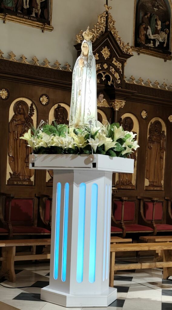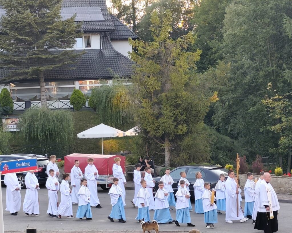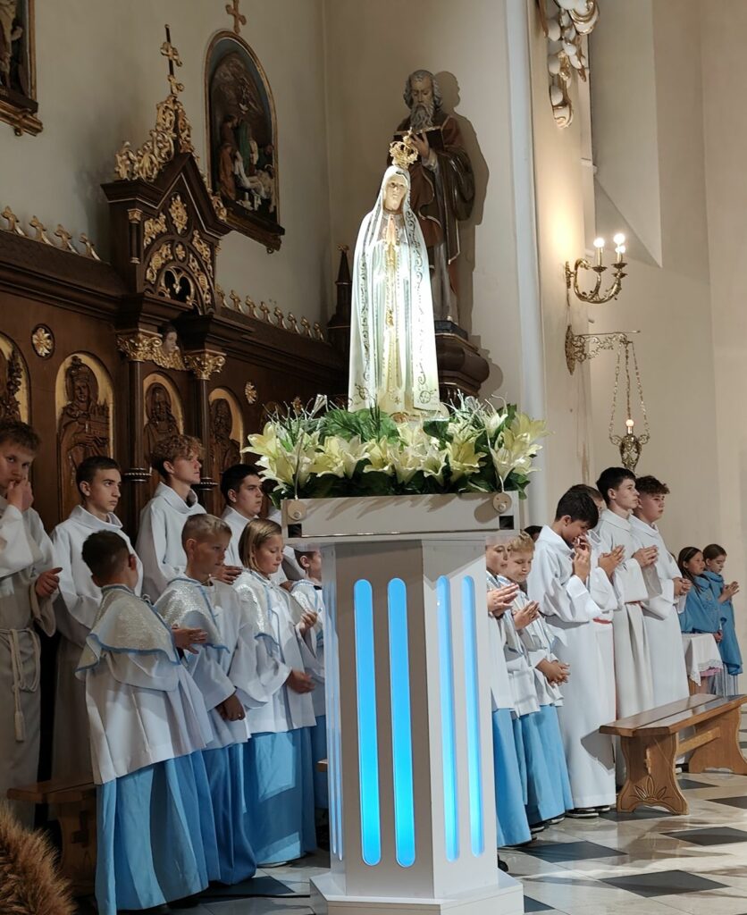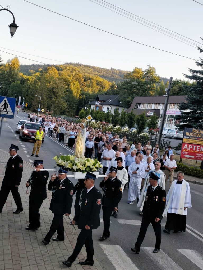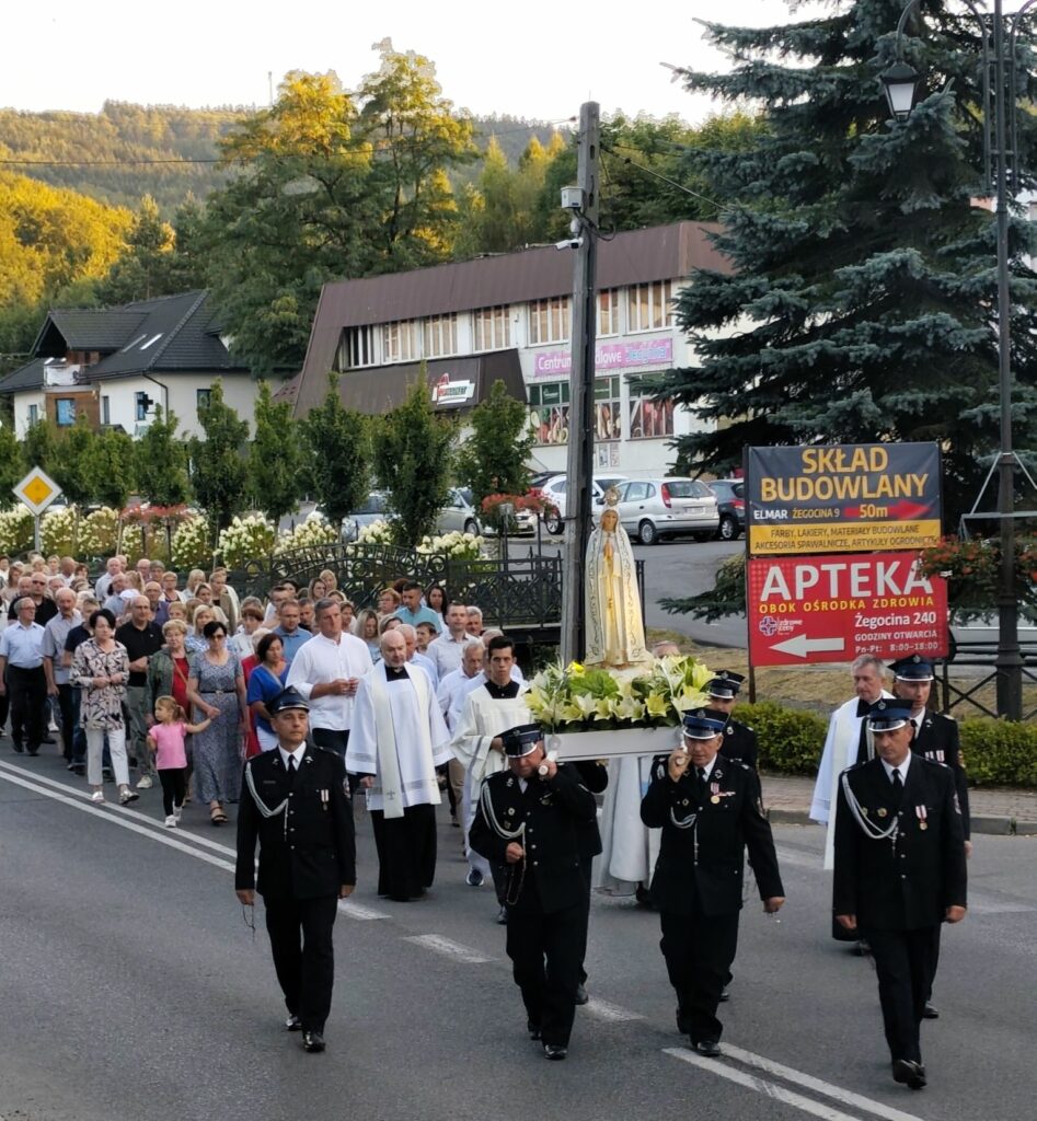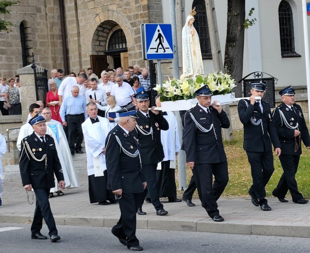 W sierpniu Maryja nie zjawiła się 13 dnia miesiąca w Cova da Iria, ponieważ dzieci zostały zatrzymane przez miejscowego starostę. Objawienie miało miejsce 19 sierpnia w Valinhos. Dlatego we wtorek 19 sierpnia w naszej parafii odbyło się kolejne nabożeństwo fatimskie. Najpierw była Eucharystia celebrowana przez ks. Piotra Klóskę, Ks. Proboszcza Bogusława, ks. Jana Wąchałę, ks. Roberta Osaka, ks. Mariusza Berko oraz ks. Zbigniewa Kępę – naszego rodaka. Po mszy odbyła się procesja fatimska w czasie której zaangażowana była Róża Św. Stanisława Kostki zelatora Andrzeja Wolaka, której członkowie odmawiali różaniec i nieśli figurę Maryi. Figurę nieśli także druhowie strażacy oraz kobiety. Strażacy także czuwali nad bezpieczeństwem uczestników procesji. Na zakończenie ks. Piotr podziękował wszystkim za wspólną modlitwę oraz zaangażowanie. Nabożeństwo jak zwykle zgromadziło wielu parafian i gości.