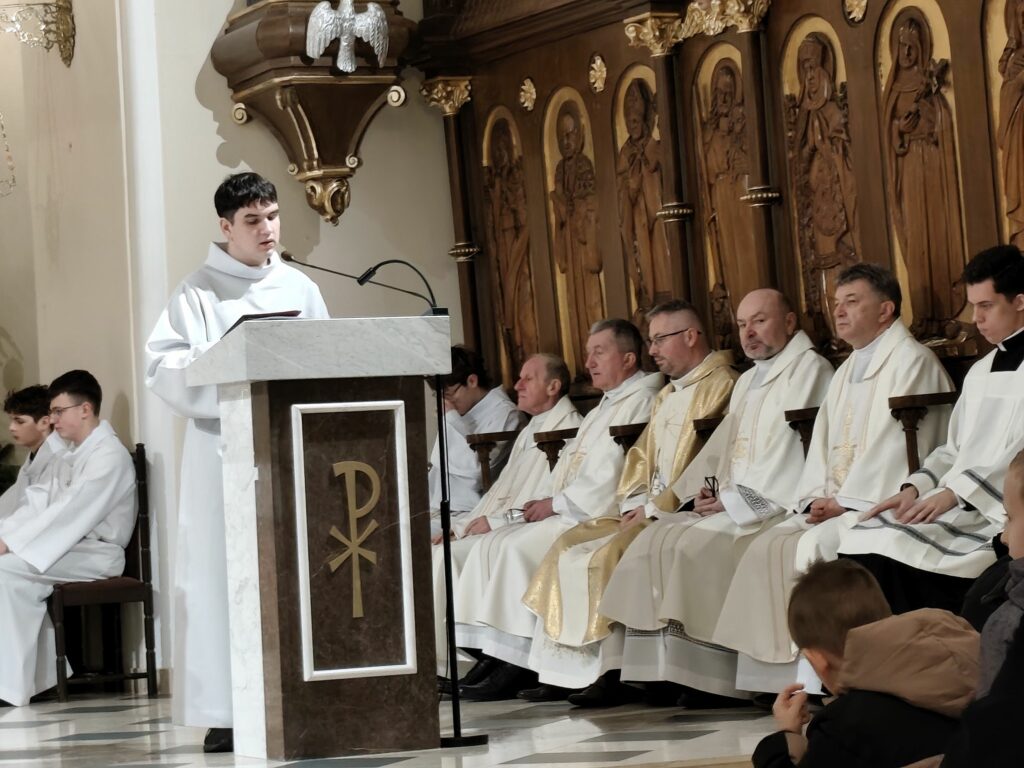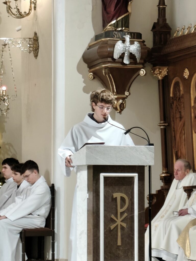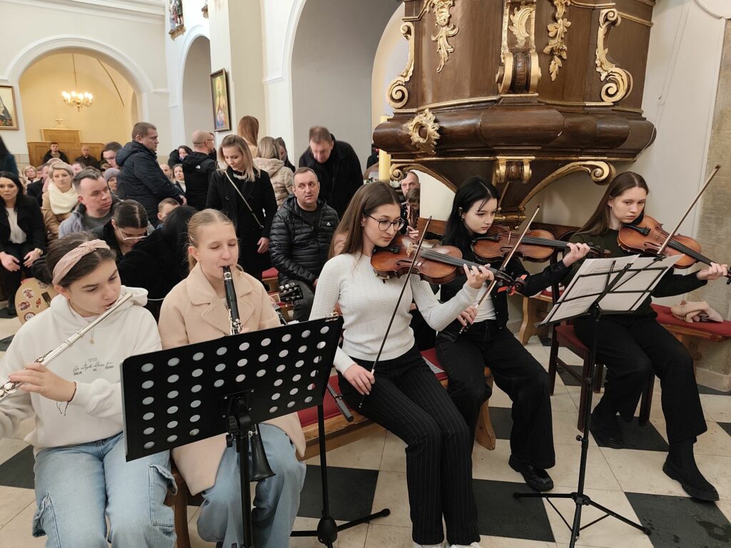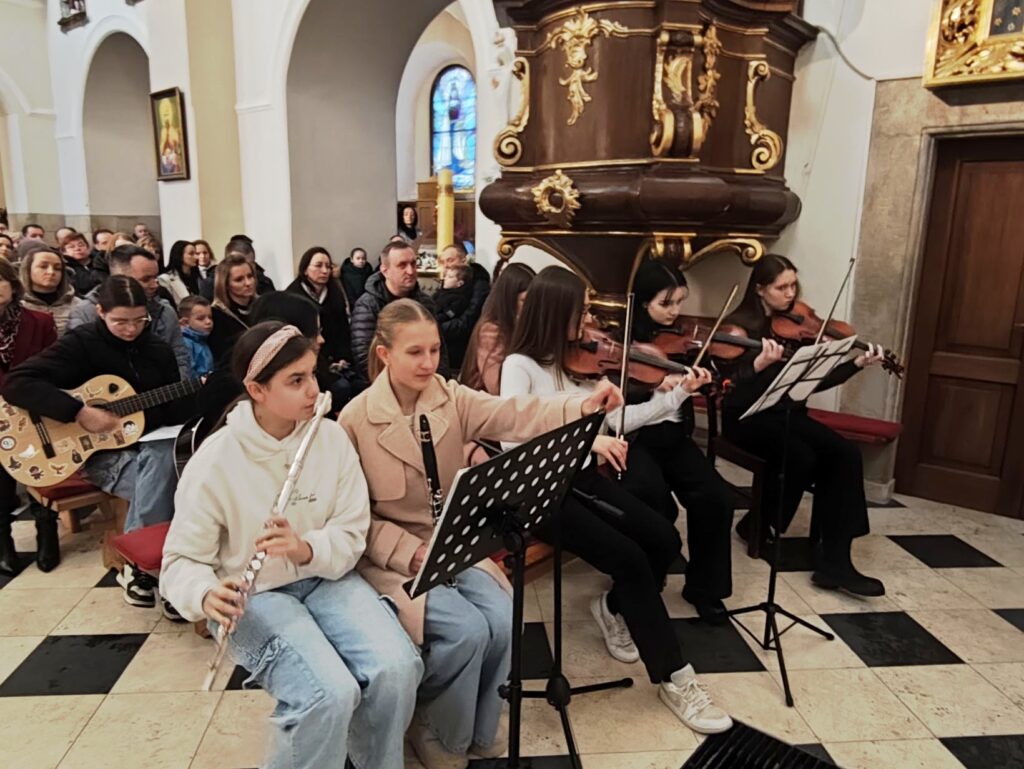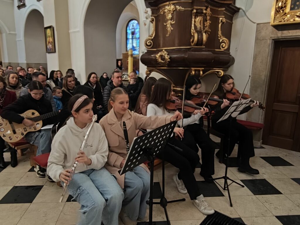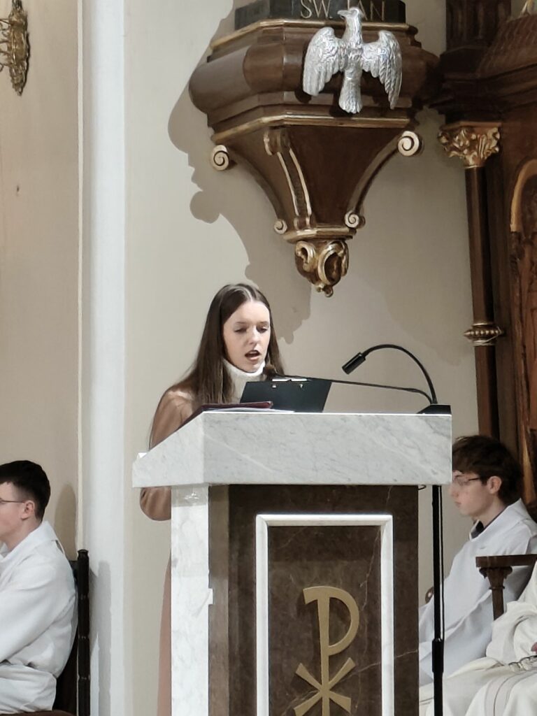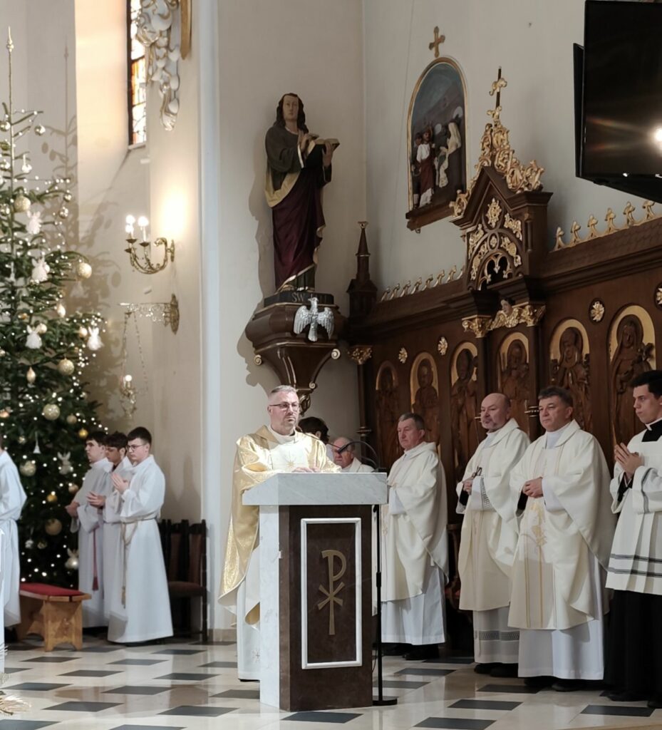 W niedzielę 4 stycznia 2026r. pierwszy raz w tym roku kalendarzowym w czasie mszy św. o godz. 11.00 celebrowanej przez: ks. Proboszcza Bogusława Pasierba, ks. Zbigniewa Kepę, ks. Piotra Klóskę, ks. Mariusza Berko, ks. Jana Wąchałę zaśpiewała Schola Parafialna prowadzona przez Panią Małgorzatę Świątko. W czasie nabożeństwa pięknie wybrzmiały kolędy i pastorałki. Scholę przez cały rok pracy wspiera młodzieżowy zespół muzyczny w składzie: Karolina Błoniarz ( skrzypce), Urszula Krawczyk ( skrzypce), Oliwia Smoleń ( skrzypce), Marysia Sroka ( gitara), Milena Duś (gitara), Natalia Kępa. ( gitara) Magda Stach. ( flet poprzeczny) Weronika Kępa. ( klarnet). Na zakończenie mszy ks. Piotr podziękował Scholi i zespołowi za piękne kolędowanie. Parafianie zaś wyrazili swoją opinię długimi i gromkimi brawami.