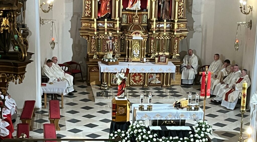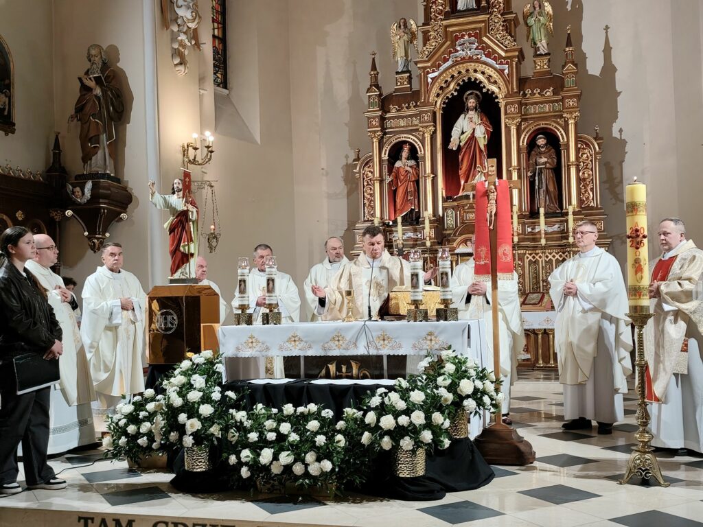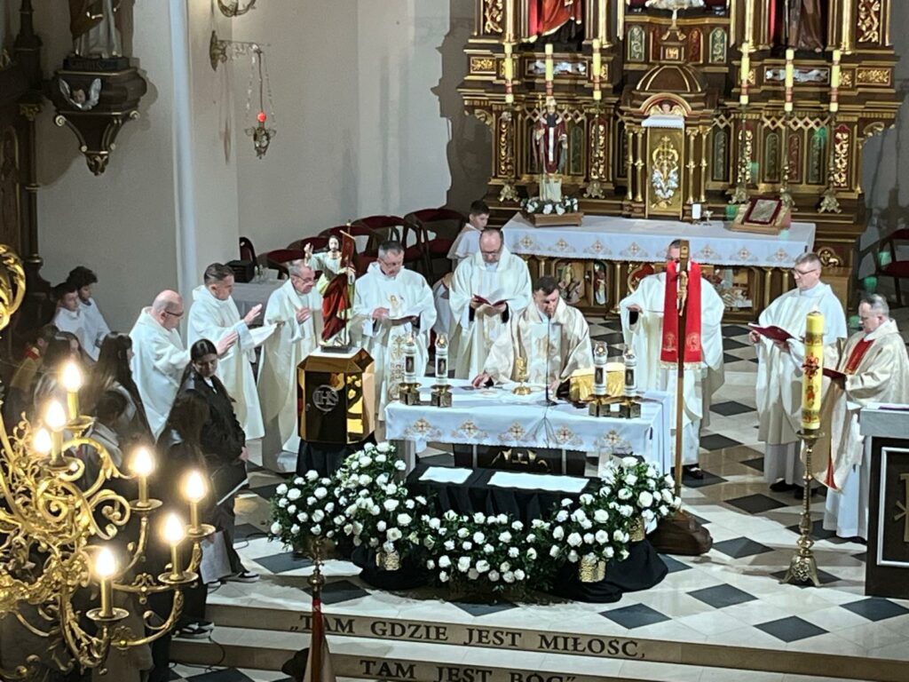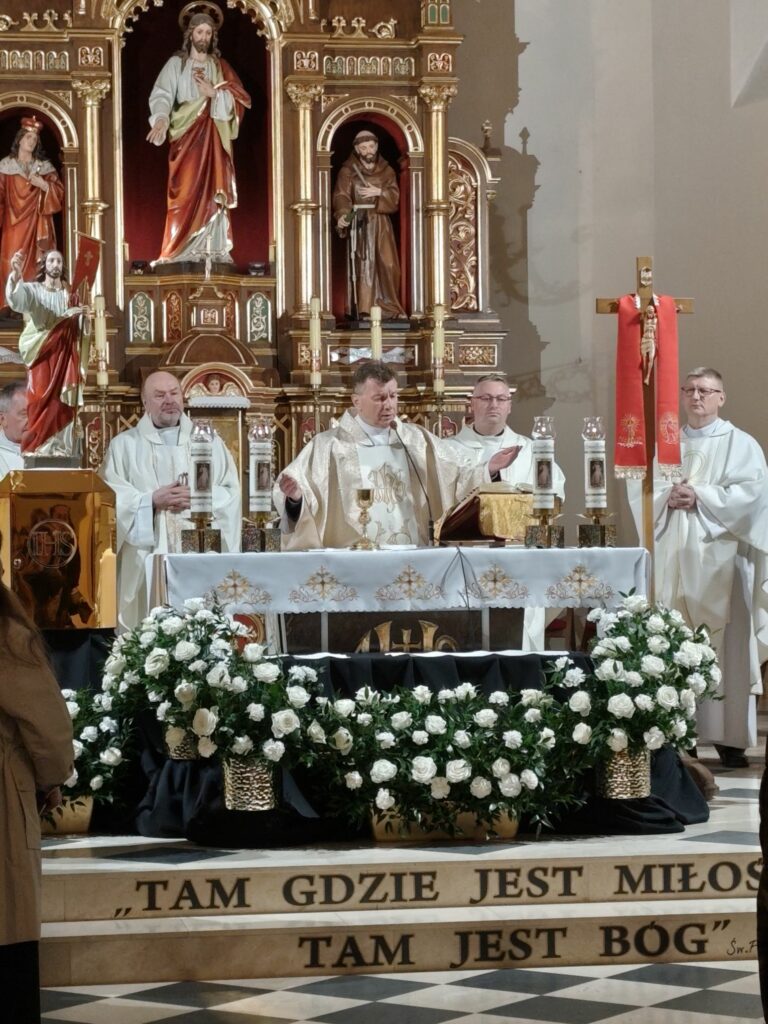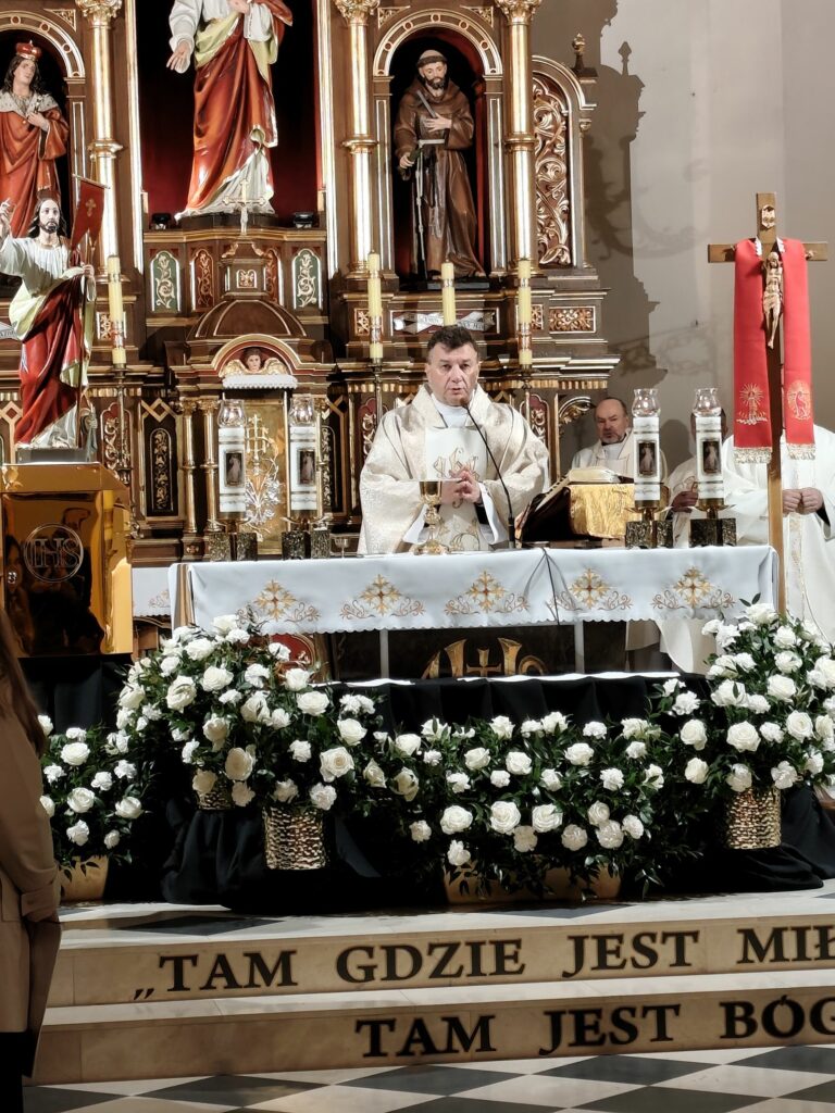 wymordowało ponad 22 tysiące polskich oficerów i funkcjonariuszy Policji Państwowej. W katyńskich dołach śmierci spoczywa wielu oficerów i policjantów, między innymi kapelani katyńscy i przedstawiciele naszej parafii: Jan Waligóra i Władysław Imiołek. Nie możemy o Nich zapomnieć! W intencji pomordowanych została odprawiona koncelebrowana msza św., której przewodniczył ks. Proboszcz Bogusław Pasierb. Celebrowali ją także: ks. kpt SG Robert Młynarczyk, ks. Józef Brzostowski, ks. płk dr Zbigniew Kępa, ks. Tomasz Majchrzak, ks. Robert Osak, ks. Piotr Klóska, ks. Jan Wąchała, ks. Mariusz Berko. Okolicznościową homilię wygłosił ks. Zbigniew Kępa, w której przybliżył zgromadzonym parafianom, gościom i młodzieży wydarzenia z 1940 roku. Nie zabrakło też przedstawicieli klasy SG z ZS w Żegocinie wraz ze sztandarem szkoły. Nabożeństwo uświetnił swoim pięknym śpiewem chór szkolny Szkoły Podstawowej im. Świętej Kingi w Żegocinie pod kierunkiem pani Anny Maurer – Pasionek. Na zakończenie ks. Proboszcz Bogusław Pasierb podziękował wszystkim zebranym za obecność i zaprosił na dalszy ciąg uroczystości poświęconej ofiarom Katynia pod Dęby katyńskie i do CKSiT w Żegocinie na film.