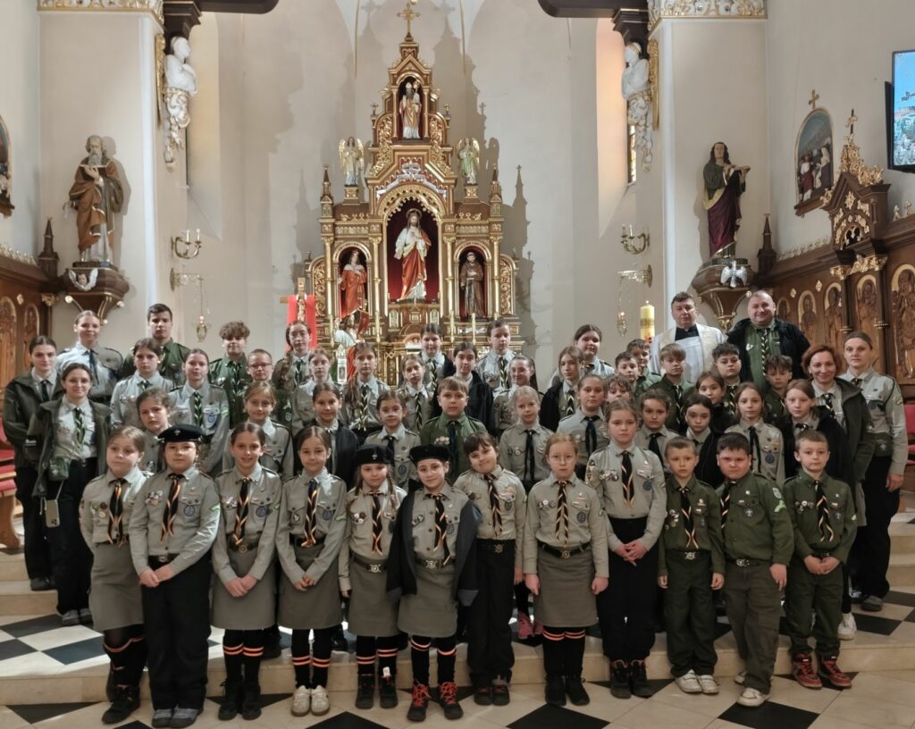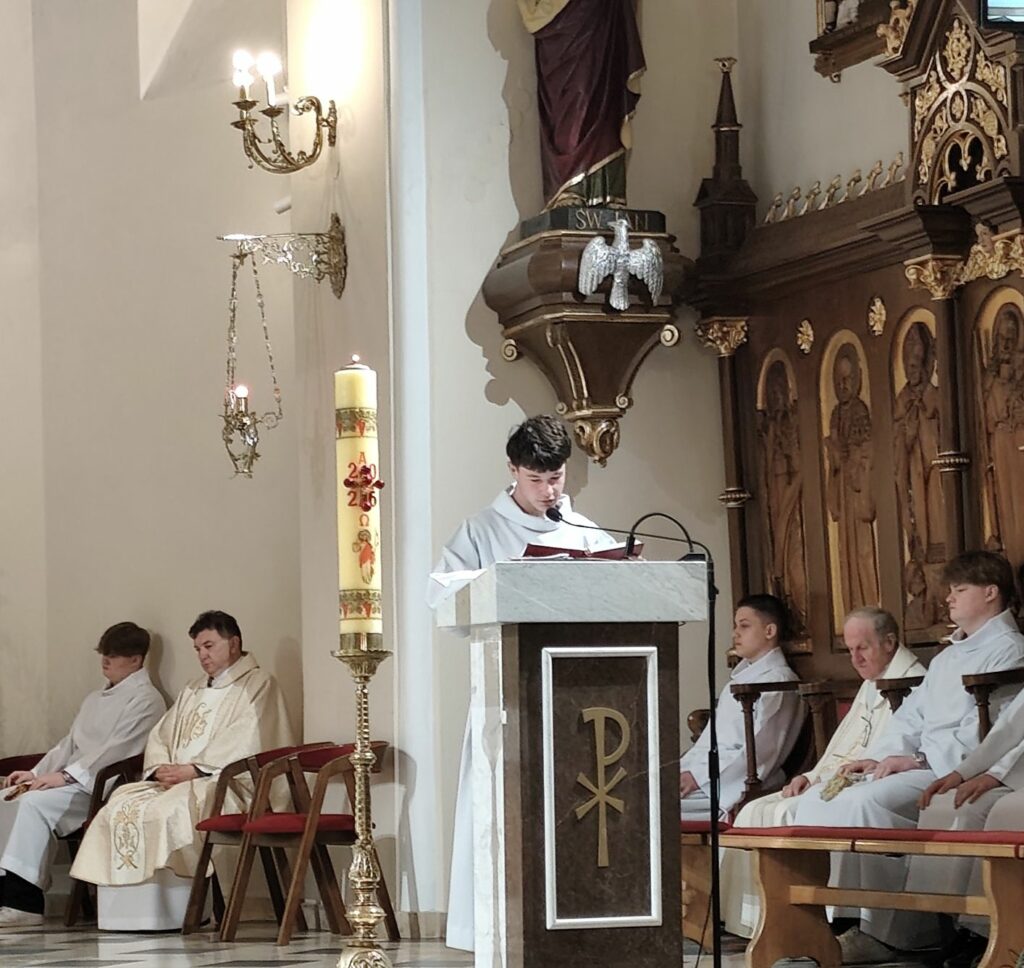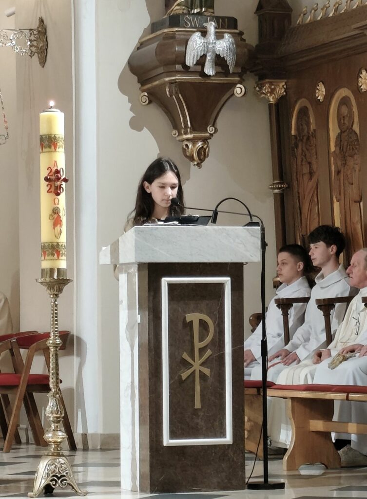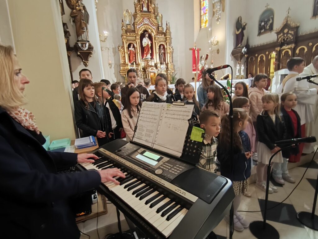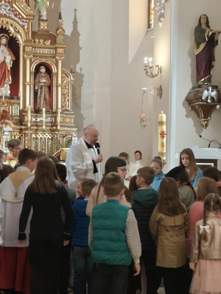 Mszę świętą o godz. 9.45 celebrowali  Ks. Bogusław Pasierb proboszcz oraz ks. Jan Wąchał . Homilię o wartości Słowa Bożego i potrzebie Jego zgłębiania poprzez czytanie Biblii do dzieci wygłosił ks. Mariusz Berko. Liturgię ubogacił piękny śpiew Scholii parafialnej pod kierunkiem P. Małgorzaty Świątko z piękną, delikatną grą Młodzieżowego Zespołu Muzycznego w składzie: K. Błoniarz ( skrzypce), K. Marzec ( skrzypce) W. Kępa ( klarnet), M. Stach ( flet poprzeczny) M. Duś ( gitara). W nabożeństwie uczestniczyli również zuchy i harcerze z Jadownik Brzeskich- Szczep Czarny im. Bohaterów Państwa Podziemnego, którzy wypoczywali w naszej parafii. Na zakończenie ks. proboszcz podziękował Scholi i zespołowi za ubogacenie liturgii, a uczestnicy nabożeństwa nagrodzili młodych artystów brawami.