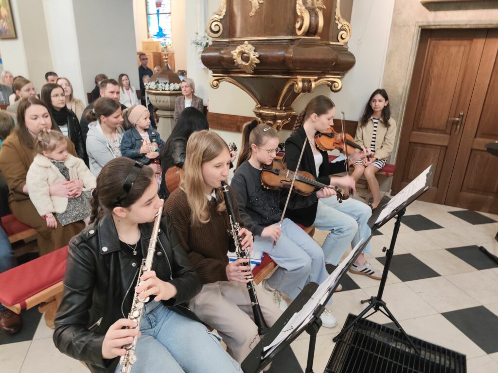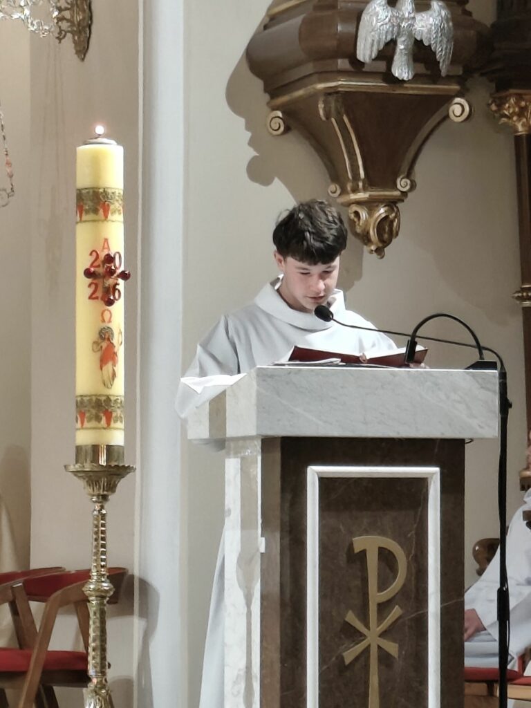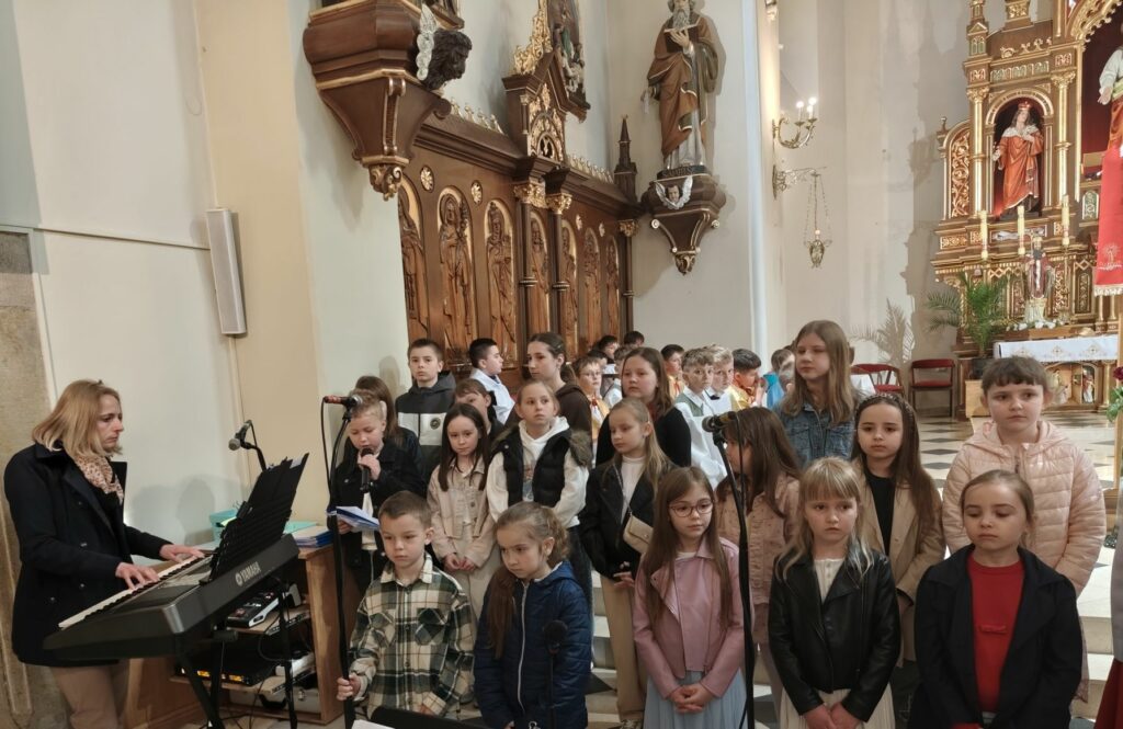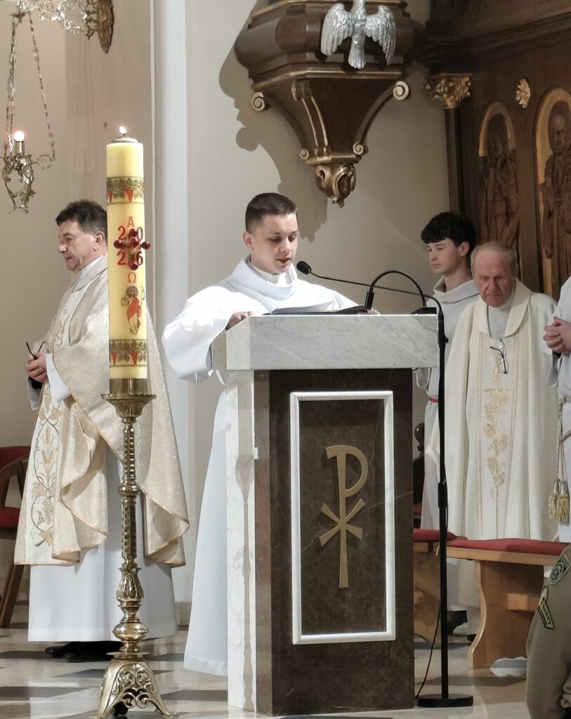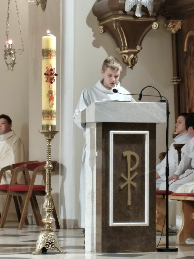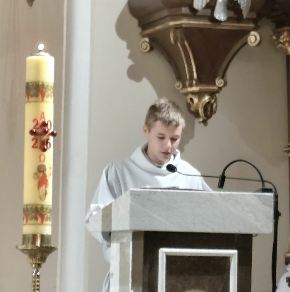 Mszę świętą o godz. 9.45 celebrowali  Ks. Bogusław Pasierb proboszcz oraz ks. Jan Wąchał . Homilię o wartości Słowa Bożego i potrzebie Jego zgłębiania poprzez czytanie Biblii do dzieci wygłosił ks. Mariusz Berko. Liturgię ubogacił piękny śpiew Scholii parafialnej pod kierunkiem P. Małgorzaty Świątko z piękną, delikatną grą Młodzieżowego Zespołu Muzycznego w składzie: K. Błoniarz ( skrzypce), K. Marzec ( skrzypce) W. Kępa ( klarnet), M. Stach ( flet poprzeczny) M. Duś ( gitara). W nabożeństwie uczestniczyli również zuchy i harcerze z Jadownik Brzeskich- Szczep Czarny im. Bohaterów Państwa Podziemnego, którzy wypoczywali w naszej parafii. Na zakończenie ks. proboszcz podziękował Scholi i zespołowi za ubogacenie liturgii, a uczestnicy nabożeństwa nagrodzili młodych artystów brawami.