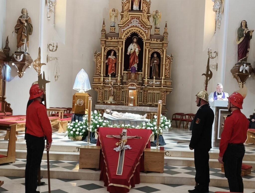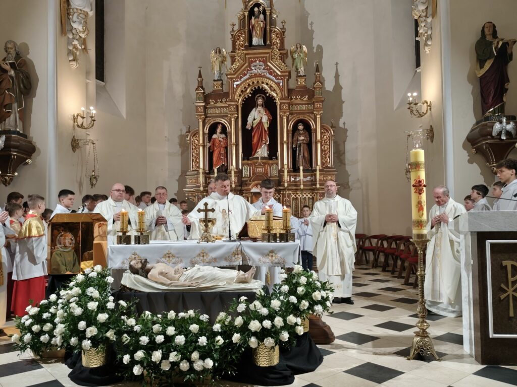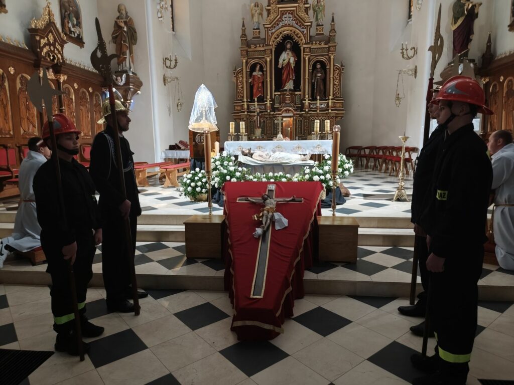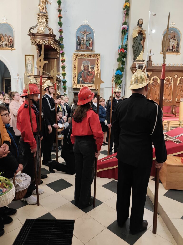 W Kościele rzymskokatolickim dzień ten jest dniem wyciszenia i oczekiwania na przyjście Chrystusa. Od wczesnych godzin rannych katolicy adorują Najświętszy Sakrament w Grobie Pańskim. Tradycyjnie przy Grobie Pańskim czuwają ministranci, lektorzy DSM, również druhowie strażacy. Tradycyjnie w tym dniu, przed południem błogosławi się pokarmy na stół wielkanocny. Po zapadnięciu zmroku odprawiana jest msza Wigilii Paschalnej, na która składa się: Liturgia Światła, Liturgia Słowa Bożego, Liturgia Chrzcielna, Liturgia Eucharystyczna, w czasie której piękne kazanie wygłosił ks. Proboszcz Bogusław Pasierb. Rezurekcyjną mszę świętą uświetniła Orkiestra CKSiT w Żegocinie. Uroczystym ogłoszeniem całemu światu radosnej wieści o zmartwychwstaniu Pana była procesja rezurekcyjna. W tym roku odbyła się ona ulicami Żegociny i zgromadziła ogromną liczbę parafian i gości. Wszystkim, którzy włączyli się w przygotowanie w naszej parafii Triduum Paschalnego, Mszy Rezurekcyjnej i Procesji Rezurekcyjnej z głębi serca dziękujemy. Zapraszamy do galerii zdjęć.