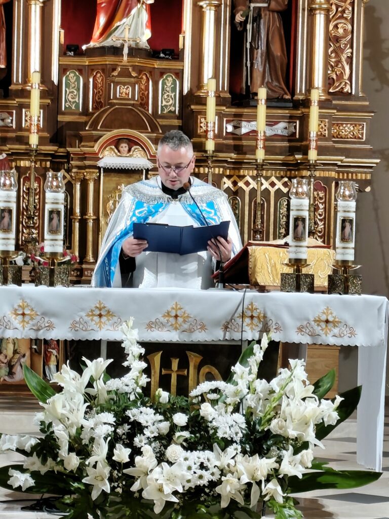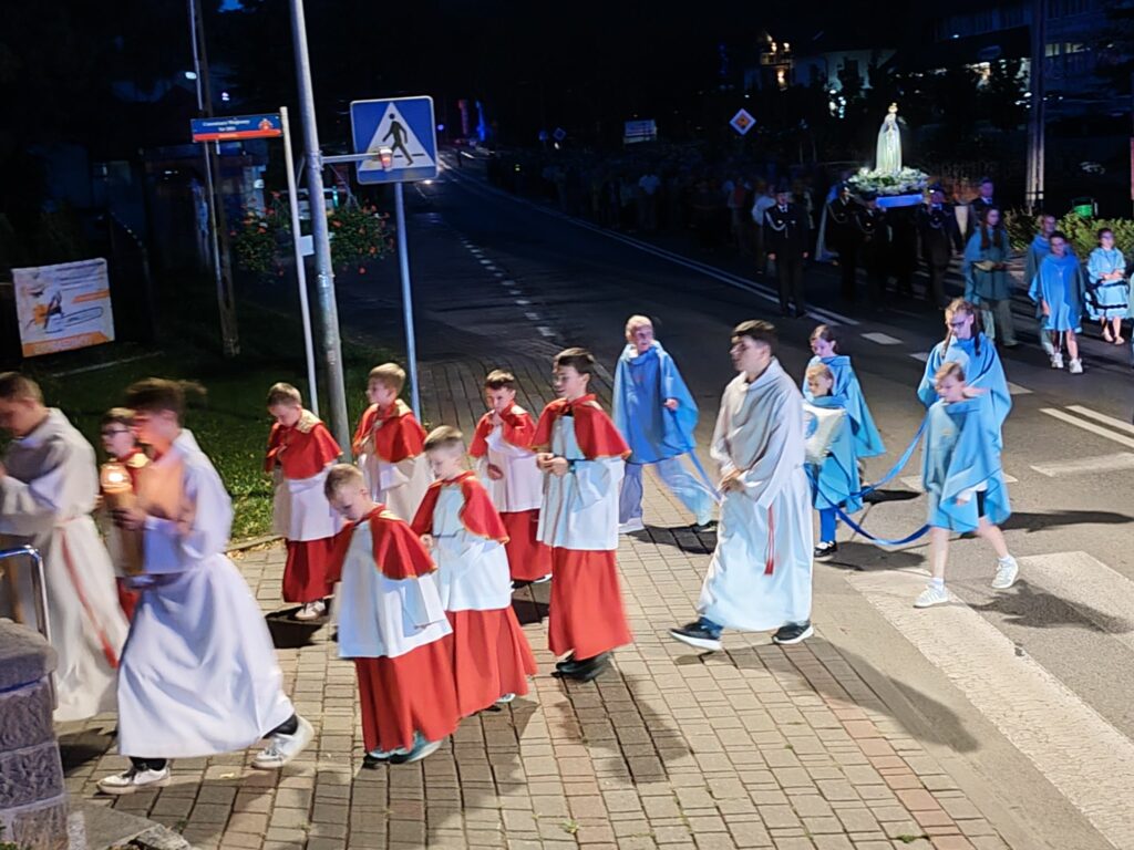13 września 2025 r. o 18.00 w naszej parafii po Mszy św. celebrowanej przez ks. Piotra Klóskę, który wygłosił okolicznościową homilię, ks. Proboszcza Bogusława Pasierba, ks. Józefa Bobowskiego ( rodaka) i ks. Mariusza Berko rozpoczęła się V Procesja Fatimska w tym roku. Prowadził ją ks. Piotr. Różaniec odmawiały kobiety z Róży Różańcowej świętej Łucji zeletorki Marii Juszczyk. Figurę tradycyjnie nieśli druhowie strażacy oraz ojcowie i matki z Róży Różańcowej zelatorki Bożeny Piwowarczyk. Na zakończenie nabożeństwa ks. Piotr podziękował wszystkim za liczny udział w procesji. Pogoda dopisała, więc procesja zgromadziła jak co miesiąc sporo parafian. Zapraszamy do galerii zdjęć.